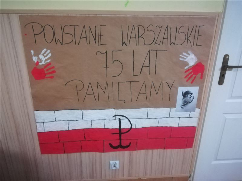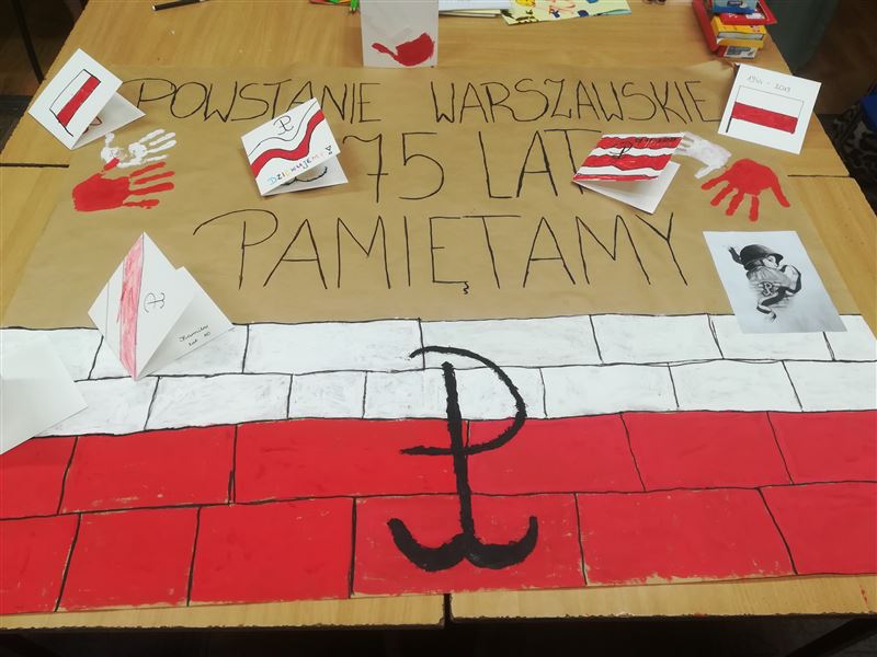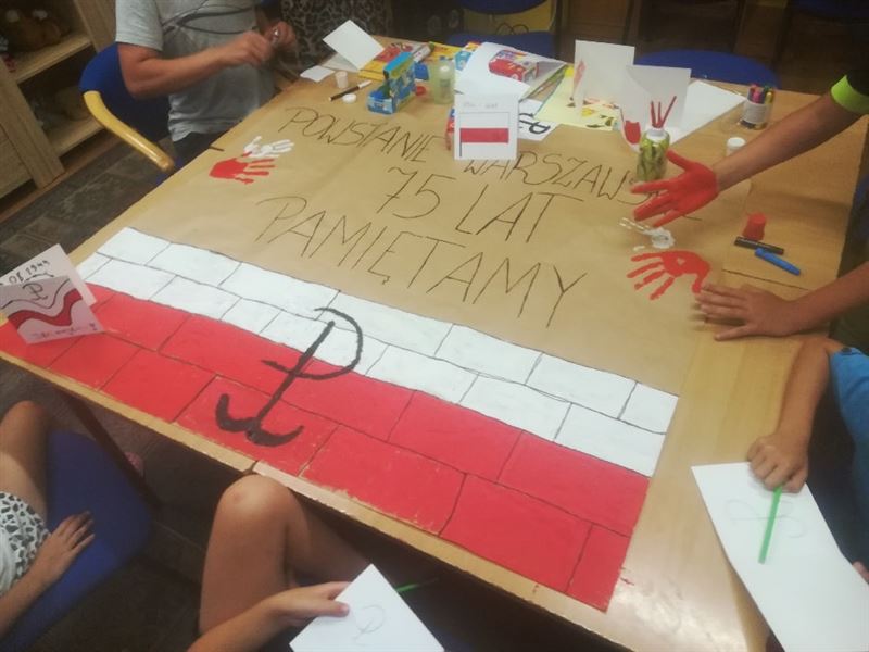 Następnie zainspirowani rozmowami przystąpiliśmy do wspólnego tworzenia plakatu upamiętniającego Powstanie Warszawskie. Zaangażowali się wszyscy, a najczęściej padającym słowem był wyraz „bohater” w każdej jego odmianie. Powstały także kartki dla powstańców, które trafią do nich w ramach kampanii „BohaterON - włącz historię!”. Pomysłów było co niemiara, każdy chciał własnoręcznie stworzyć kartkę i oddać w ten sposób cześć naszym bohaterom. To była dla wszystkich wspaniała lekcja historii, która nie zostanie szybko zapomniana.