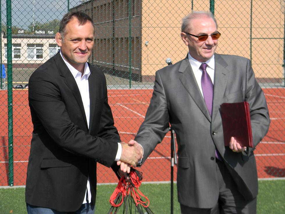 To kolejny tego typu kompleks w Powiecie Sochaczewskim realizowany w ramach programu „Moje Boisko – Orlik 2012”. Kompleks składa się z dwóch boisk. Jednego przeznaczonego do grania w piłkę nożną o powierzchni 1860 m2 oraz drugiego wielofunkcyjnego z możliwością grania na nim w siatkówkę, koszykówkę i inne gry zespołowe wielkości 613,11 m2. Na wybudowaniu Orlika skorzysta nie tylko szkoła, ale cała społeczność powiatu, bo przecież oprócz dzieci szkolnych będą mogli skorzystać z nich również absolwenci oraz całe rodziny. Budowę przy szymanowskiej podstawówce rozpoczęto jesienią zeszłego roku, a 23 września br. nastąpiło oficjalne jego otwarcie. Na uroczystości władze powiatowe reprezentował starosta sochaczewski Tadeusz Koryś, który pogratulował wójtowi gminy Teresin Markowi Olechowskiemu tak ogromnej determinacji w budowie kompleksu. Jednoczesnie podziękowł i wręczył dyrektorowi Gminnego Ośrodka Sportu i Rekreacji w Teresinie Krzysztofowi Walencikowi prezent od Starostwa Powiatowego w Sochaczewie, w postaci piłek do wielu dyscyplin sportowych na potrzeby „Orlika” – O wartości tego dzieła nie trzeba nikogo przekonywać. Dzisiejsza uroczystość jest zwieńczeniem pracy, zaangażowania i wysiłku wielu osób, którzy za priorytet stawiają rozwój kultury fizycznej młodzieży jak i podnoszenie poziomów dydaktycznych szkół gminnych – w swoim wystąpieniu przytoczył starosta. Obecny na uroczystości był również Radny Sejmiku Mazowieckiego Mirosław Adam Orliński, który wraz z wójtem gminy Teresin Markiem Olechowskim dokonali uroczystego przecięcia wstęgi, oficjalnie otwierającej kompleks. W imieniu marszałka Adama Struzika, radny A. Orliński również przekazał zestaw piłek do gry dla użytkowników kompleksu. W trakcie uroczystości na jednym z boisk toczył się mecz piłki koszykowej, uczniowie kontra nauczyciele. Zwycięzcom gratulujemy.