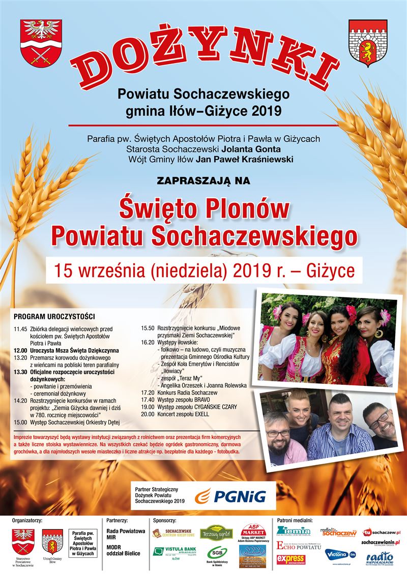 Już w tę niedzielę, 15 września święto rolników powiatu sochaczewskiego – w Giżycach w gminie Iłów odbędą się Dożynki Powiatu Sochaczewskiego, na które serdecznie zapraszają wspólnie: Jolanta Gonta, starosta sochaczewski wraz z Janem Pawłem Kraśniewskim, wójtem gminy Iłów oraz proboszcz parafii w Giżycach ks. Rafał Banasiak.