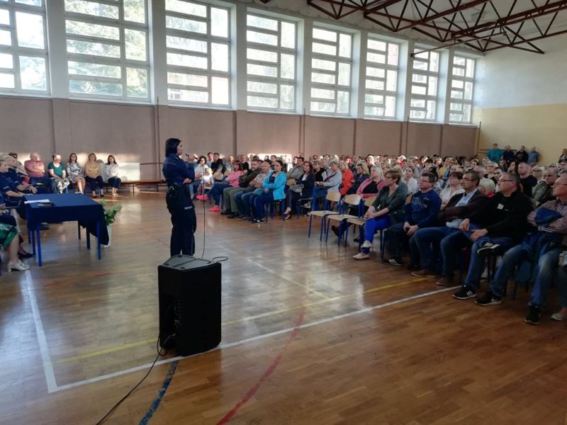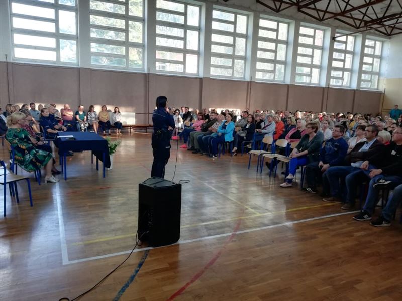 Spotkanie odbyło się 12 września i skierowane zostało do rodziców uczniów klas pierwszych. Dla rodziców i uczniów nowa szkoła to również nowe wyzwania i zagrożenia. Izabela Pajek - policjantka, która prowadziła prelekcją, bardzo mocno podkreślała, że policja jest otwarta na kontakty z rodzicami i zawsze służy pomocą. Do rodziców apelowała, by bacznie obserwowali dzieci i w razie jakichkolwiek niebezpieczeństw czy zagrożeń kontaktowali się z instytucjami takimi jak policja czy poradnie specjalistyczne. Obu stronom powinno zależeć na kształtowaniu właściwych postaw, np. promujących abstynencję, albo służących rozpoznawaniu sytuacji, w których dzieci znajdują się pod wpływem środków psychoaktywnych lub nie potrafią bezpiecznie i odpowiedzialnie korzystać z sieci.