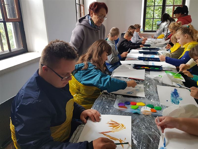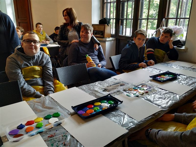 W dniu 19 września br. społeczność Zespołu Szkół Specjalnych w Erminowie uczestniczyliśmy w warsztatach „Widok zza okna” pejzaż - malarstwo szpachlą na podłożu malarskim.