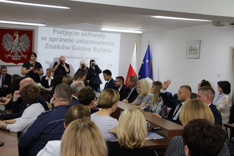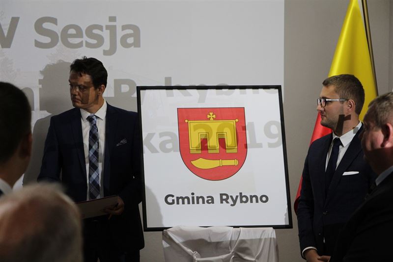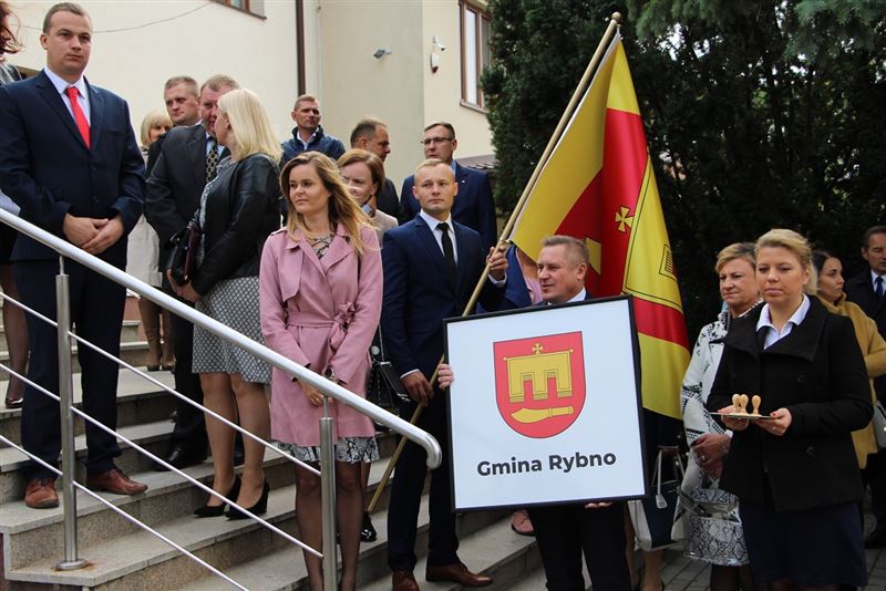 Po wielu latach oczekiwań gmina Rybno ma swój herb, pieczęć oraz flagę. Uroczyste przekazanie insygniów odbyło się w czwartek, 3 października br. Poprzedziła je nadzwyczajna sesja Rady Gminy, podczas której radni jednogłośnie podjęli uchwałę w tej sprawie. Następnie insygnia poświęcono na mszy św. kościele parafialnym pw. Św. Apostoła Bartłomieja. Dalsze uroczystości odbyły się w sali Szkoły Podstawowej z Oddziałami Przedszkolnymi im. Zygmunta Pruskiego. W tym wyjątkowym dla całej gminy Rybno dniu, w ceremonii udział wzięło wielu gości m.in.: poseł na Sejm RP Maciej Małecki, wiceprzewodniczący Sejmiku Województwa Mazowieckiego Adam Orliński, kierownik Delegatury Mazowieckiego Urzędu Wojewódzkiego w Płocku Marlena Mazurska, starosta sochaczewski Jolanta Gonta wraz z zastępcą Tadeuszem Głuchowskim i skarbnik powiatu Teresą Pawelak, wójt gminy Rybno Damian Jaworski i przewodnicząca tamtejszej Rady Sylwia Feliga, wójtowie i samorządowcy szczebla powiatowego i gminnego, sołtysi, duchowni, strażacy, funkcjonariusze policji. Co ciekawe, wśród grona gości był także wójt zaprzyjaźnionej gminy Rybno (woj. warmińsko-mazurskie) Tomasz Węgrzynowski. Przypomnijmy, gmina Rybo była dotychczas jedynym samorządem na terenie powiatu sochaczewskiego, która nie posiadała własnego herbu.