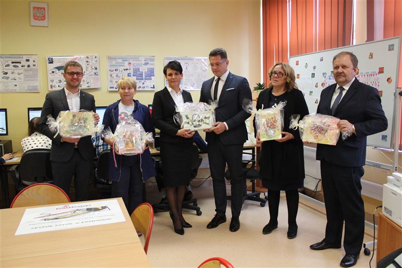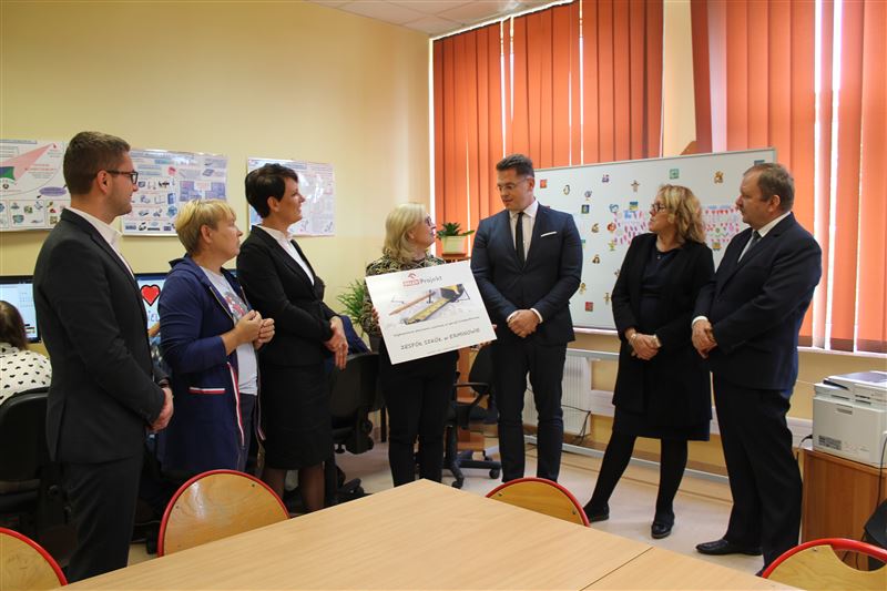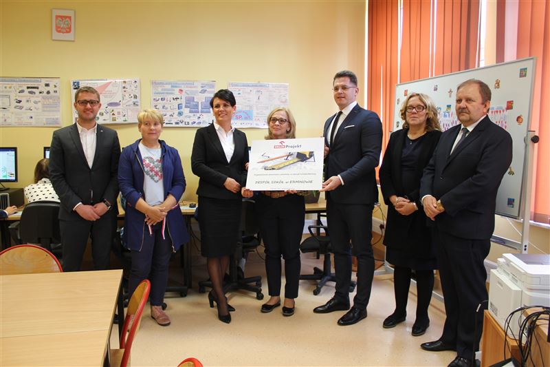 W poniedziałek, 7 października po raz pierwszy rozpoczęto w Erminowie szkolne obchody Europejskiego Tygodnia Kodowania „#CODEWEEK 2019”, to międzynarodowa akcja, odbywająca się cyklicznie już od siedmiu lat. Tego dnia do szkoły przybyli przedstawiciele firmy Orlen Projekt S A, Agnieszka Urbaniak i Maciej Wawer, a także władze samorządowe: starosta sochaczewski Jolanta Gonta, wicestarosta Tadeusz Głuchowski, Bożena Samson - członek Zarządu Powiatu, dyrektor Powiatowego Zespołu Edukacji Urszula Opasiak a także wójt gminy Rybno Damian Jaworski. Dokonano oficjalnego, uroczystego otwarcia nowej pracowni informatycznej, były życzenia, słowa podziękowania, wręczono gościom upominki wykonane przez dzieci.