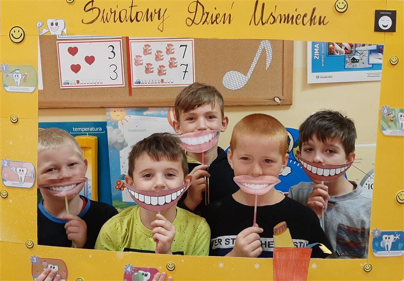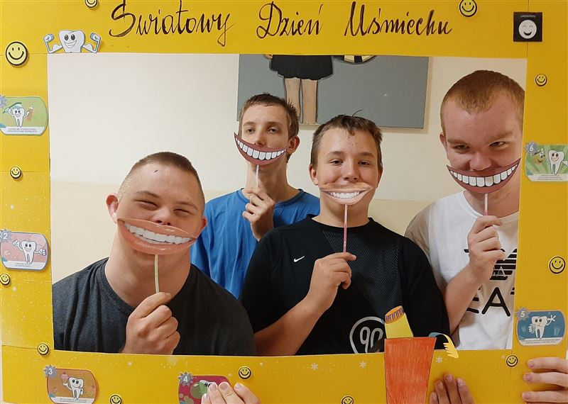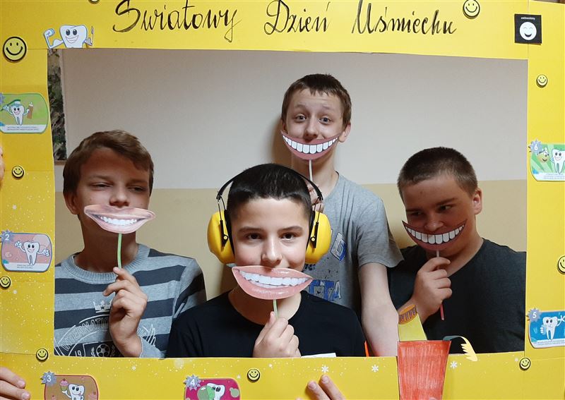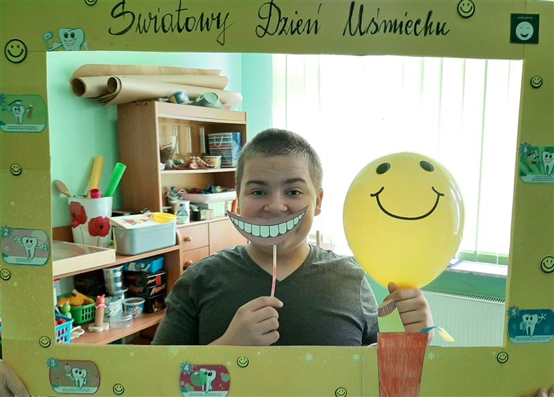 W piątek, 4 października br. w Zespole Szkół Specjalnych w Erminowie obchodzono Światowy Dzień Uśmiechu. – Chcieliśmy tym samym przekonać siebie i innych, że człowiek radosny to człowiek szczęśliwszy – mówią członkowie koła prozdrowotnego. Rozdawali wszystkim uczniom żółte balony z symbolem uśmiechniętej buzi. Tego dnia można było sobie zrobić pamiątkowe zdjęcie w ramce specjalnie przygotowanej na tę okazję.