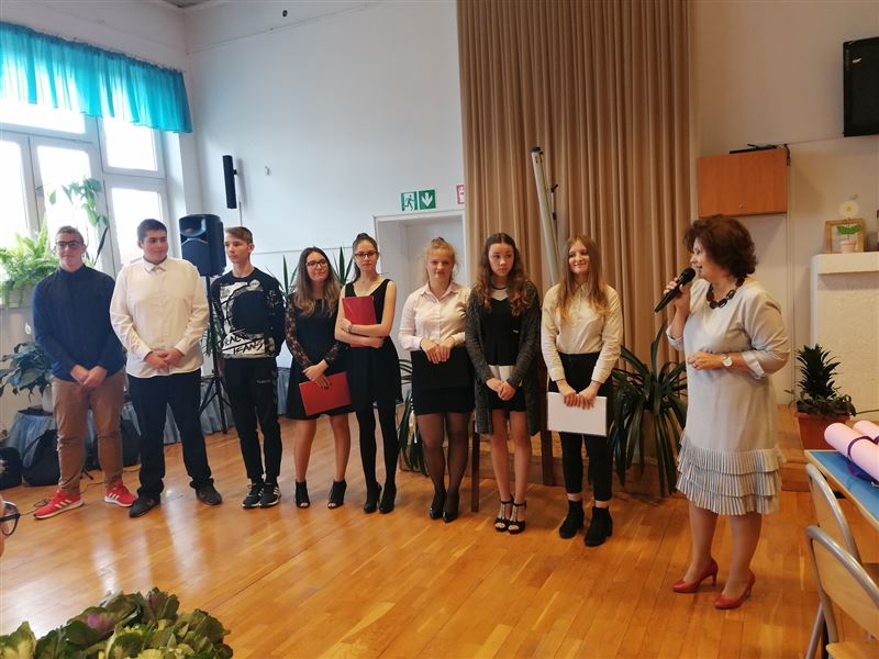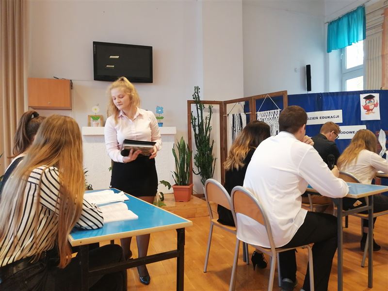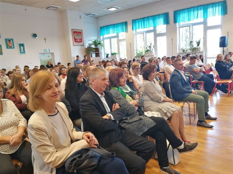 Dzień Edukacji Narodowej to przede wszystkim święto wszystkich nauczycieli oraz pracowników szkoły. Tradycyjnie w ramach podziękowania za trud włożony w edukację i wychowanie uczniowie składają im życzenia. Z tej okazji 15 października br. młodzież Zespołu Szkół im. Stefana Kardynała Wyszyńskiego w Teresinie pod kierunkiem nauczycielek - Anety Podrażki, Edyty Gałeckiej i Renaty Kusej przygotowali występ artystyczny. Dyrektor Ewa Odolczyk przedstawiła także skład SU oraz wyniki sportowej rywalizacji za rok szkolny 2018/2019.