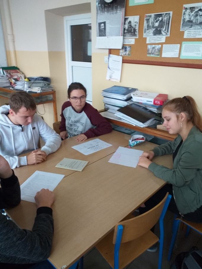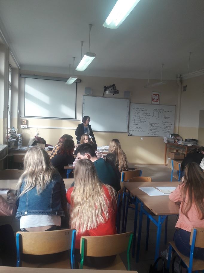 W listopadzie szkołę odwiedziła sędzia Sądu Okręgowego w Łodzi Katarzyna Wesołowska-Zbudniewek. Zajęcia w pierwszej części dotyczyły trójpodziału władzy w Polsce, uczniowie poznali schemat konstytucyjny. Pracując w grupach młodzież wcieliła się w rolę sędziów Trybunału Konstytucyjnego. Na drugiej godzinie młodzież poznała zakres wolność słowa, poruszono kwestię godności człowieka, analizowano piramidę nienawiści Gordona Allporta. Uczniowie poszukiwali sposobów zwalczania hejtu, poprzez zgłaszanie nadużycia do administratora portalu, poszukiwania przez ofiary grupy wsparcia. Młodzież zastanawiała się co zrobić gdyby sama stała się ofiarą mowy nienawiści. W jaki prawny sposób walczyć z taką sytuacją. Pracując w grupach młodzież formułowała z pozycji świadka odpowiedzi dowcipne, polemiczne, rzeczowe na podane przykłady hejtu.