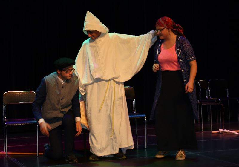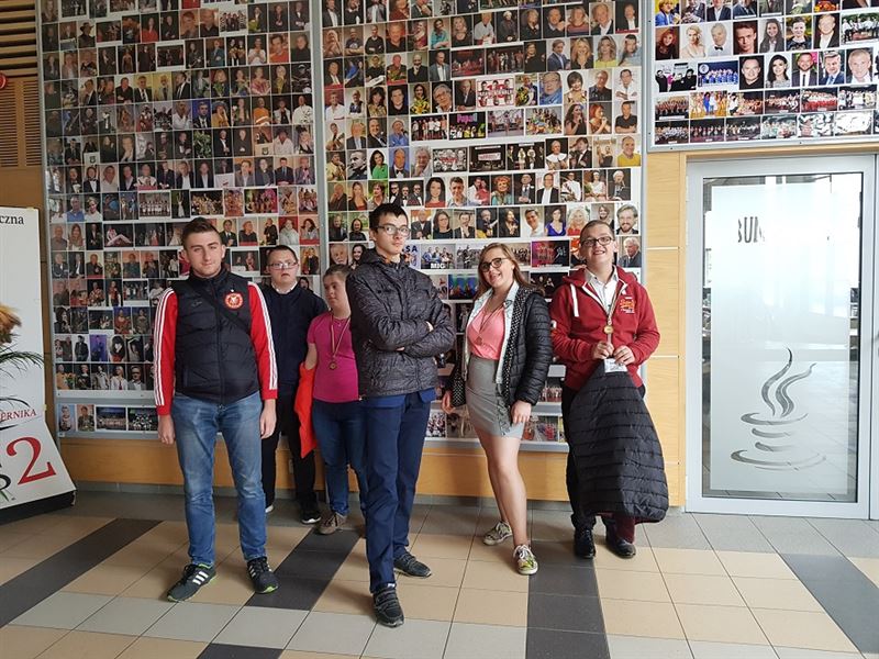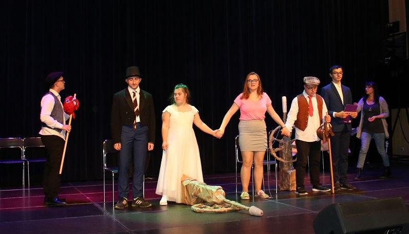 Gratulujemy również naszym uczniom udanego występu i zdobycia pamiątkowej statuetki podczas X edycji Festiwalu teatralno-muzycznego „Dajemy radość”. W tym roku Zespół Szkół Specjalnych w Erminowie reprezentowali (w kolejności alfabetycznej): Iza Chłystek (w podwójnej roli: Baba i Prząśniczka), Tomek Jażdżyk (Młodzieniec), Mateusz Klocek (w podwójnej roli: Śmierć oraz Młodzieniec z ubocza), Mateusz Marciniak (Młodzieniec z wiciną), Kasia Orlikowska (wiarołomna Prząśniczka) oraz Bartek Rutkowski (wystąpił w roli Dziada, a także zaśpiewał pieśń Moniuszki „Prząśniczka”). Raz jeszcze gratulujemy i życzymy dalszych sukcesów artystycznych!