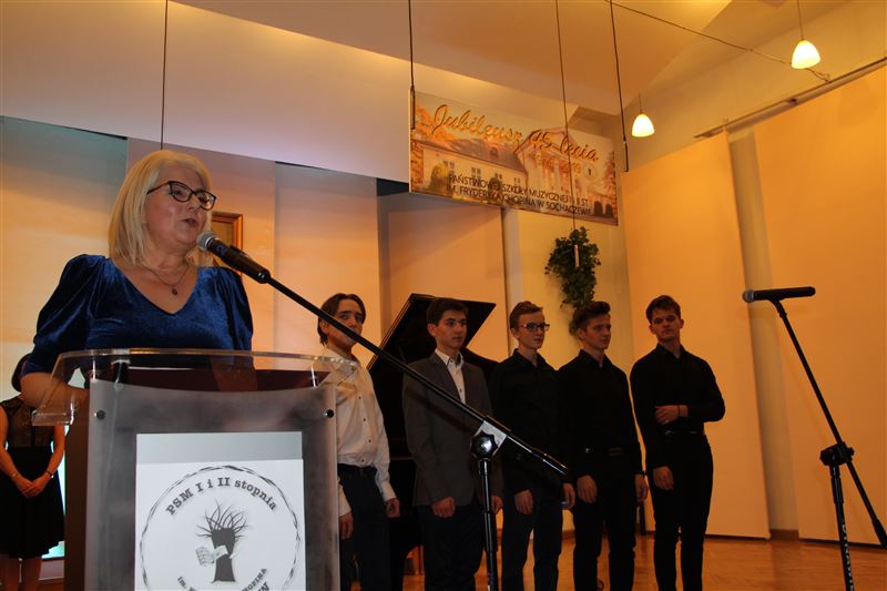 Jak wielu ma ona przyjaciół, sympatyków świadczy fakt, że tak wielu gości przybyło świętować zacny jubileusz Państwowej Szkoły Muzycznej. Były życzenia, gratulacje, podziękowania za rozwijanie muzycznych talentów, ale i za współpracę, pochwały za osiągane wyniki, udane przedsięwzięcia a także prezenty – wszyscy goście w samych superlatywach wygłaszali peany na cześć placówki, która uczy dziś niespełna 300 uczniów, zatrudniając 49 pedagogów. Nieprzerwanie od 45 lat kształci muzycznie kolejne pokolenia mieszkańców Sochaczewa, ale też ościennych miejscowości. W tradycję wpisały się organizowane tu z powodzeniem koncerty okolicznościowe, konkursy i festiwale muzyczne. Jak podkreślała w swym wystąpieniu Anna Wróblewska, dyrektor PSM, bardzo często zdarza się, że w jednej rodzinie kilka osób pobiera lub pobierało naukę w tej szkole, która niewątpliwie jest wizytówką naszej ziemi sochaczewskiej. Jak podkreślała w swym wystąpieniu obecna na jubileuszu starosta Jolanta Gonta, Szkoła Muzyczna aktywnie uczestniczy w wielu ważnych wydarzeniach, odbywających się na terenie powiatu sochaczewskiego, soliści, ale i chór uświetniają swą obecnością tak historyczne, jak i kulturalne spotkania. - Takie jubileusze cieszą, życzymy kolejnych tak udanych i wiernego grona odbiorców – mówiła starosta. Wraz z Bogumiłem Czubackim, członkiem Zarządu Powiatu wręczyła dyrekcji Szkoły prezent wraz z okolicznościowym grawertonem. Ponadto, gratulacje i życzenia na ręce dyrektor składali: poseł na Sejm RP Maciej Małecki, wiceprzewodniczący Sejmiku Woj. Mazowieckiego Adam Orliński, Łukasz Gołębiowski, radny Sejmiku Woj. Mazowieckiego, burmistrz Sochaczewa Piotr Osiecki wraz z Sylwestrem Kaczmarkiem, przewodniczącym Rady Miejskiej oraz wójt gminy Sochaczew – Mirosław Orliński.