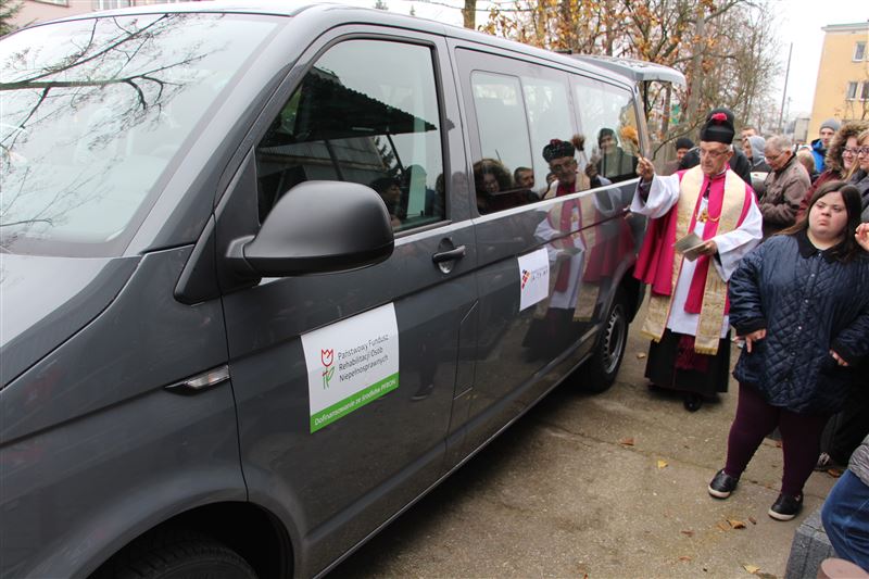 - To radosny dzień dla nas wszystkich. Ten piękny samochód jakże istotny dla uczestników WTZ jest w zupełności przystosowany do potrzeb osób niepełnosprawnych. Daje on ogromną szansę, by podopieczni ośrodka mogli jeździć jeszcze więcej i dalej - co bardzo ważne - w sposób bezpieczny i komfortowy. Dzisiejsze wydarzenie to również dowód, że powiat sochaczewski dba o potrzeby osób niepełnosprawnych. Myślę, że dla podopiecznych WTZ jest to jakby przedmikołajkowy upominek, który służyć będzie im na długie lata – mówiła starosta Jolanta Gonta. Poza nią, w uroczystości przekazania auta uczestniczyli też m.in. Magdalena Osińska – kierwnik WTZ Sochaczew, Joanna Kamińska – naczelnik Wydziału Polityki Społecznej i Ochrony Zdrowia w Urzędzie Miejskim w Sochaczewie, Tomasz Musielski – prezes Stowarzyszenia „Ja-Ty-My”, Bartłomiej Małota – przedstawiciel firmy Benepol Sp. z o.o. Dealer Volkswagen, którzy wspólnie dokonali ceremonialnego przecięcia symbolicznej wstęgi. Odtąd auto, które poświęcił prałat ks. Jan Kaczmarczyk, będzie do dyspozycji sochaczewskiego WTZ. Nowiutki Volkswagen Transporter zastąpił tym samym, 15-letniego, wysłużonego już poprzednika tej samej marki. Otrzymany pojazd, dostosowane do przewozu osób na wózkach inwalidzkich, ma za zadanie usunąć barierę transportową, która uniemożliwia bądź bardzo utrudnia pełne uczestnictwo oraz dotarcie niepełnosprawnych m.in. na badania specjalistyczne, do szpitali, przychodni, turnusy rehabilitacyjne, zajęcia terapeutyczne czy inne poza ośrodkiem. Ponadto, mikrobus w jeszcze większym stopniu przyczynić ma się nie tylko do poprawy warunków prowadzonej działalności WTZ, ale również do wzrostu jakości i efektywności usług świadczonych dla podopiecznych placówki.