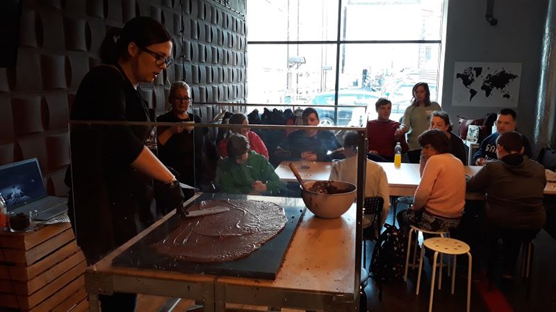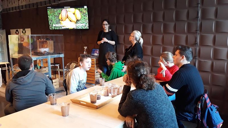 - Każdy uczestnik miał możliwość stworzenia własnej tabliczki czekolady z dodatkiem wybranych liofilizowanych owoców i bakalii. Ponadto mieli także możliwość skosztowania gorącej czekolady oraz degustowania ziarna kakaowca. Wycieczka zakończyła się krótkim spacerem po Starówce – mówi Agnieszka Grabarek z ZSS Erminów.