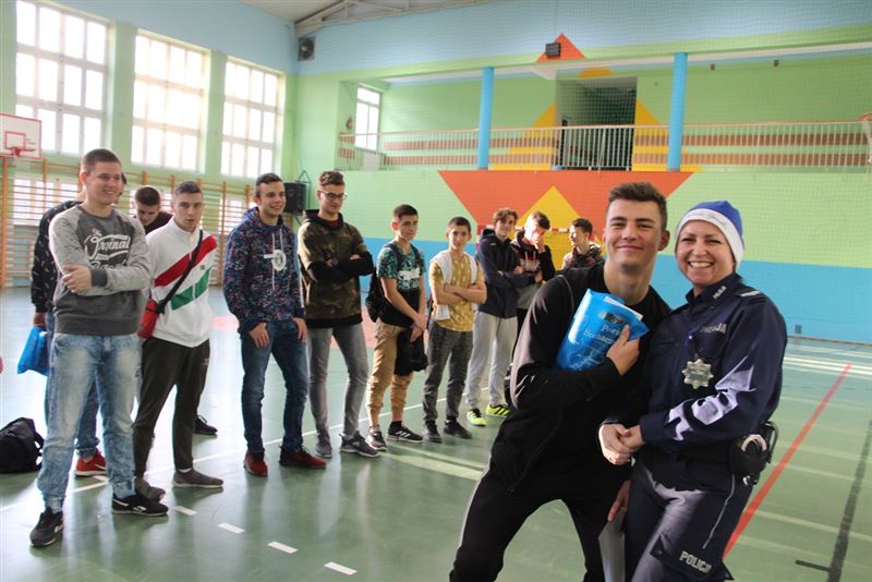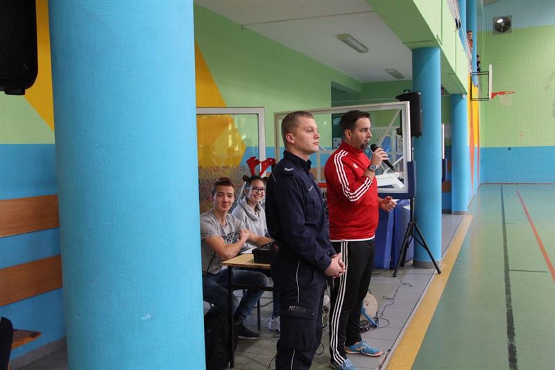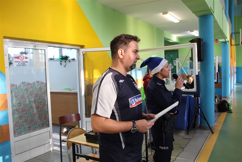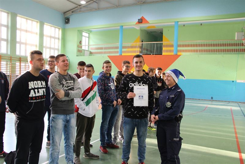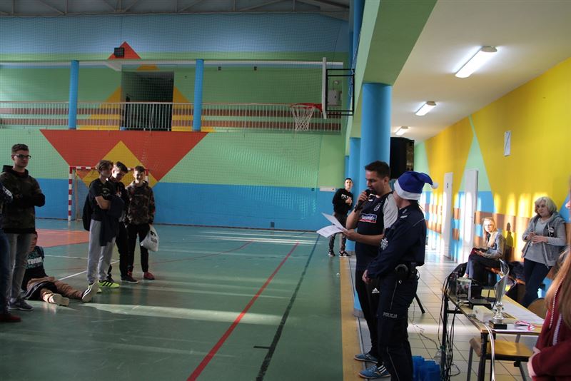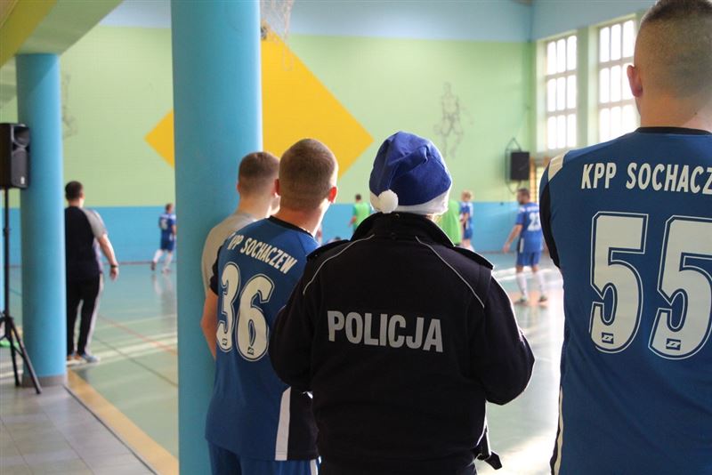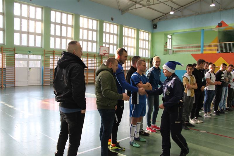 Halowa rywalizacja w piłkę nożną tradycyjnie wywołała duże zainteresowanie, zarówno wśród zawodników, jak i licznie przybyłych kibiców. Tym razem, była też doskonałą okazją, by zebrać dary dla najbardziej potrzebujących mieszkańców nie tylko gminy Teresin, ale i całego powiatu. Mikołajkowy Turniej Piłkarski w ramach policyjnej „Niebieskiej Gwiazdki” zorganizowany został przez teresiński Zespół Szkół, Starostwo Powiatowe w Sochaczewie i KPP Sochaczew. Stawką był puchar starosty sochaczewskiego Jolanty Gonta. Oczywiście nie mogło zabraknąć pomysłodawczyni „Niebieskiej Gwiazdki” i głównej koordynatorki charytatywnej akcji – st. sierż. Anny Opęchowskiej-Ciak, niezwykle zaangażowanej policjantki z Teresina. W tym roku to już siódma edycja przedsięwzięcia teresińskiego Posterunku Policji. Imprezę z ramienia Starostwa poprowadził rzecznik prasowy Marcin Odolczyk, główny koordynator turnieju. Uczniowie tradycyjnie nie zawiedli, kolejny już raz udowadniając swoją otwartość i wrażliwość na ludzkie potrzeby. Na starcie stanęło osiem ekip, wśród nich „Błękitna Drużyna”, czyli reprezentacja Komendy Powiatowej Policji w Sochaczewie na czele z Katarzyną Żak, wicemistrzynią świata w piłce nożnej plażowej kobiet i mistrzynią świata wśród drużyn mundurowych. Emocji zabraknąć nie mogło, a każdy z uczestników i kibiców podarunkiem wsparł „Niebieską Gwiazdkę”. To nie wszystko, bo podczas tej edycji rozgrywek odbywała się również zbiórka na leczenie Mai Kapłon. Puszka zapełniała się w szybkim tempie, za co teresińskiej społeczności należą się kolejne brawa. Nauczyciele, uczniowie, obsługa administracja, policjanci ochoczo wrzucali dobrowolne datki, głęboko wierząc, że wkrótce Maja wróci do zdrowia.