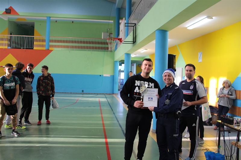 - Młodzież po raz kolejny pokazała, że potrafi pomagać i zjednoczyć siły dla dobrego celu i spełnienia marzeń innych. Wszystkim uczestnikom serdecznie dziękuję. – mówiła dzielnicowa st. sierż. Anna Opęchowska-Ciak. Jej koledzy wraz z Katarzyną Żak ostatecznie zajęli w turnieju czwarte miejsce wśród ośmiu rywalizujących drużyn. Organizatorzy przygotowali też wyróżnienia indywidualne. „Królem strzelców” (9 goli) został Albert Kozłowski, najlepszym bramkarzem Karol Abramczyk, a najlepszym zawodnikiem Artur Ziąbski.