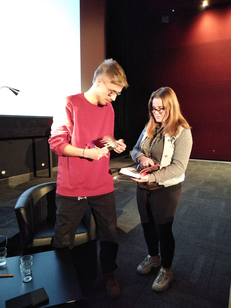 - Mieliśmy okazję porozmawiać z pisarką Katarzyną Ryrych, autorką m.in. utworów z książki „Gorzka czekolada i inne opowiadania o ważnych sprawach”, znanych naszym uczniom biorącym udział w programie i polecanych przez nich gorąco wszystkim młodym czytelnikom. Zapewniamy, że poruszane w nich tematy są naprawdę bliskie współczesnej młodzieży i warte tego, aby o nich pomyśleć. Co ważne, można je wypożyczyć w naszej szkolnej bibliotece – mówi nauczycielka Renata Firlej. Dodaje też, że silne wrażenie wywarł na uczestnikach z Erminowa także drugi gość spotkania: Mikser, raper-filozof i animator kultury. Zaprezentował uczestnikom zaimprowizowany na gorąco freestyle o wartościach, a także inne swoje utwory, ale zaimponował wszystkim nie tylko swoją twórczością. Jego postawa życiowa i doświadczenia, którymi się podzielił, wzbudziły podziw dla odwagi, asertywności, wierności sobie i pasji, które go cechują. Autografy obojga twórców, zdobyte podczas spotkania stanowią od dziś naszą dumę.