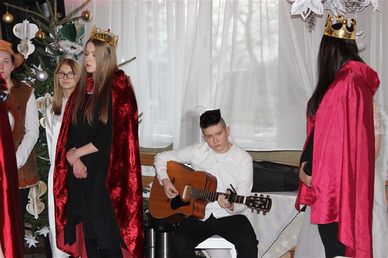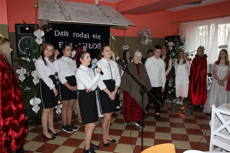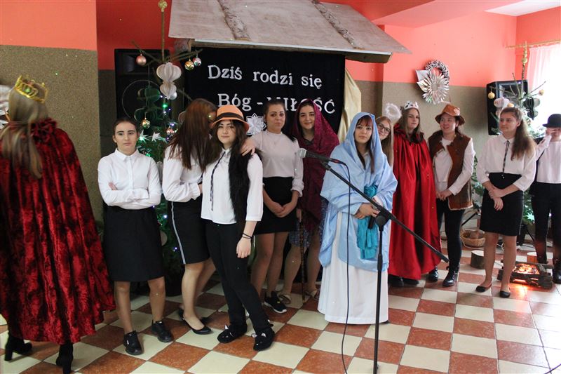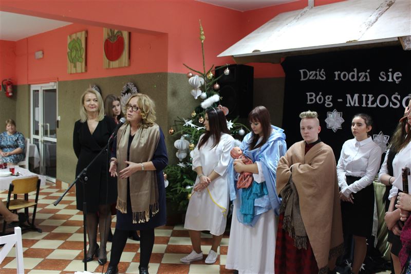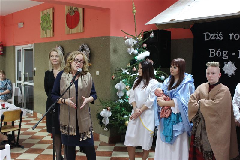 16 grudnia wychowanki naszej placówki pod kierunkiem katechetki Katarzyny Krzemińskiej i nauczycielki Urszuli Olkiewicz z ogromnym zaangażowaniem wcieliły się w swoje role, przypominając w ten sposób wydarzenia sprzed ponad dwóch tysięcy lat, kiedy to w Betlejem narodziło się Boże Dzieciątko. Dziewczęta wcieliły się w role Maryi i Józefa, pasterzy, aniołów, trzech króli. Świetności inscenizacji dodały pastorałki i kolędy w wykonaniu naszych uczennic. Do wspólnego kolędowania włączyła się zgromadzona publiczność. Cieszymy się ogromnie, że w tak wyjątkowym momencie byli z nami zaproszeni goście a wśród nich starosta sochaczewski Jolanta Gonta, wicestarosta Tadeusz Głuchowski, dyrektor Powiatowego Zespołu Edukacji Urszula Opasiak, przewodniczący Komisji Oświaty i Wychowania, Kultury, Sportu i Turystyki Rady Powiatu Daniel Janiak, ksiądz Ireneusz Kosiorek, dyrektor Zespołu Szkół Specjalnych w Erminowie Renata Karaś, dyrektor Domu Pomocy Społecznej w Młodzieszynie Konrad Jakubowski, dyrektor Placówki Opiekuńczo- Wychowawczej w Giżycach Kamila Gołaszewska-Kotlarz.