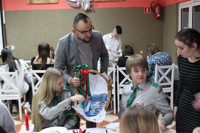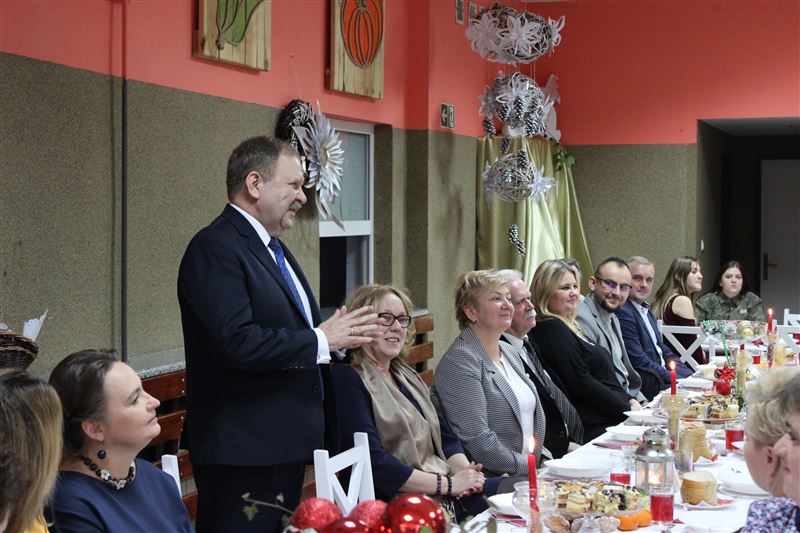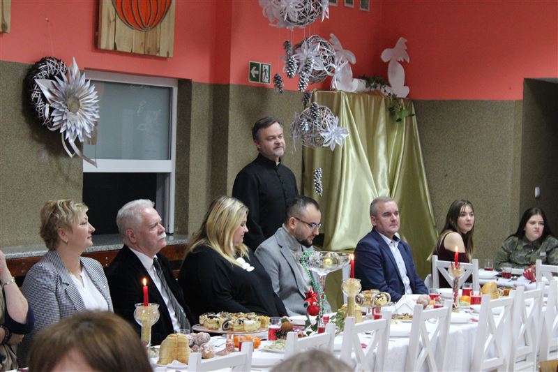 Po zakończeniu spektaklu głos zabrała dyrektor Agnieszka Ambroziak, która podziękowała artystom za wprowadzenie w klimat świąt Bożego Narodzenia i złożyła wszystkim świąteczne życzenia. Do życzeń dołączyli się także zaproszeni goście, którzy skierowali wiele ciepłych słów do naszych artystów. Następnie wszyscy podzielili się opłatkiem i zasiedli do wieczerzy wigilijnej.