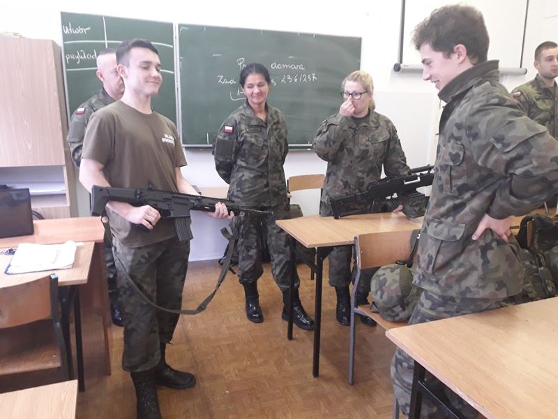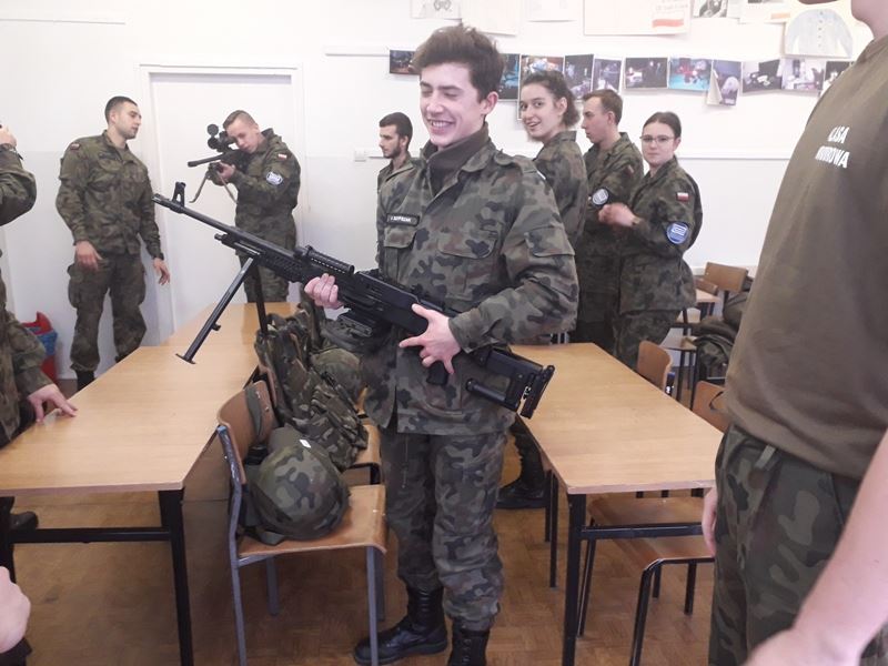 Zajęcia dotyczące broni, czy z pierwszej pomocy na polu walki to tylko część ze zrealizowanych tematów podczas poligonowych warsztatów uczniów z Iwaszkiewicza. W styczniu klasy służb mundurowych z Zespołu Szkół im. Jarosława Iwaszkiewicza realizowały zajęcia dydaktyczne z 6. Mazowiecką Brygadą Obrony Terytorialnej w Płocku, Komendą Powiatową Policji w Sochaczewie i 3. Warszawską Brygadą Rakietową Obrony Powietrznej. Podczas nich uczniowie zapoznali się z najnowszym rodzajem broni strzeleckiej używanej przez poszczególne służby. – Były to m.in karabinki grot, snajperskie i ciężkie karabiny maszynowe. Można było je dotknąć, przeładować i rozłożyć pod nadzorem instruktorów. Sprawiało nam to wielką radość i satysfakcję. Przeprowadzone zostały również zajęcia na temat skażeń chemicznych oraz pierwszej pomocy na polu walki. Poznaliśmy również historię Policji Państwowej na ziemi sochaczewskiej i dowiedzieliśmy się, jakie należy spełniać kryteria, aby zostać policjantem. Wszystkim służbą serdecznie dziękujemy za zaangażowanie w naszą współpracę i czas spędzony z nami – mówią zadowoleni uczniowie klas mundurowych. Takie zajęcia nie tylko wzbogacają wiedzę, ale też stanowią świetną przygodę podczas nauki w Iwaszkiewiczu.