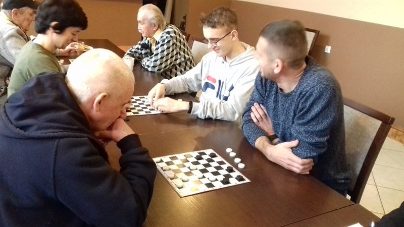 Poniedziałek, 10 lutego br dla mieszkańców Domu Pomocy Społecznej w Młodzieszynie był bardzo dobrym dniem. W Miejskim Ośrodku Sportu i Rekreacji w Sochaczewie odbył się turniej warcabowy, na którym to turnieju panowie: Szymański Władysław, Pakuła Adam, Rydczak Jerzy, Grefkowicz Edward opanowali podium zajmując pierwsze cztery miejsca. Wszyscy zawodnicy stosowali się do zasad fair play, nawiązali między sobą przyjazne stosunki co sprzyjało zdrowej rywalizacji. Nasi Mieszkańcy do domu powrócili z entuzjazmem i pełni zapału do dalszych rozgrywek. Dziękujemy za możliwość udziału w tak wspaniale przygotowanym turnieju.