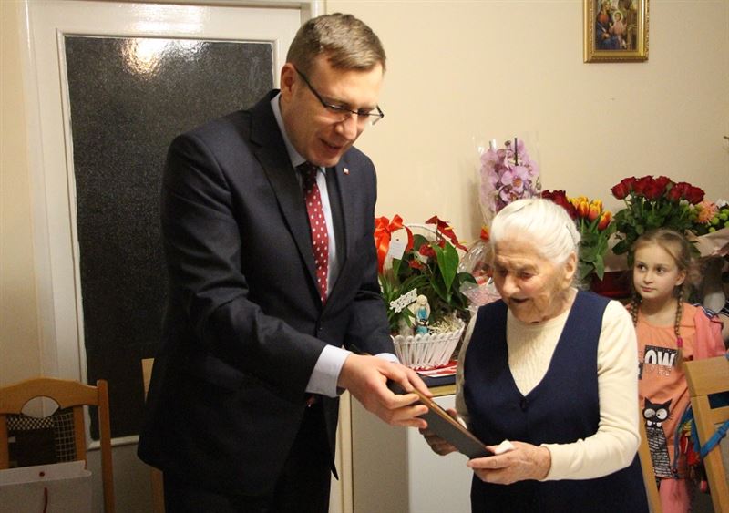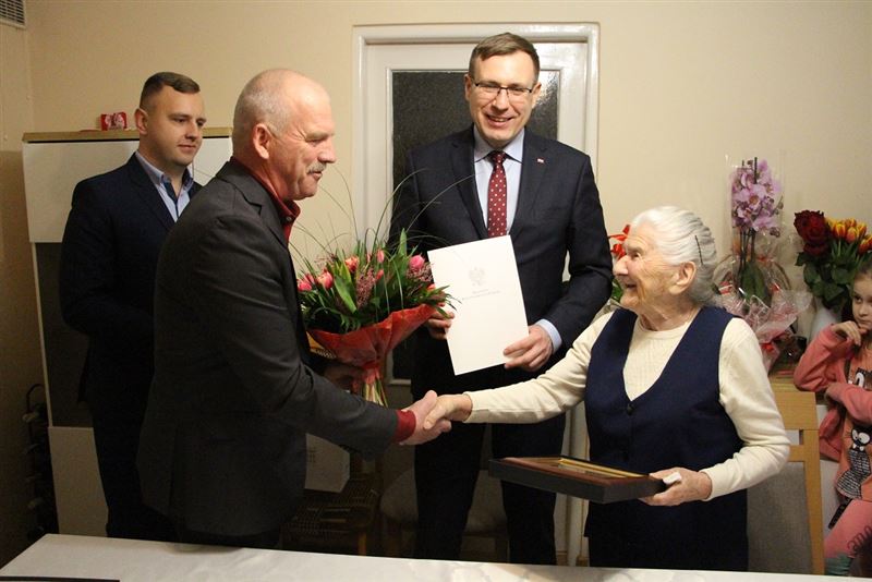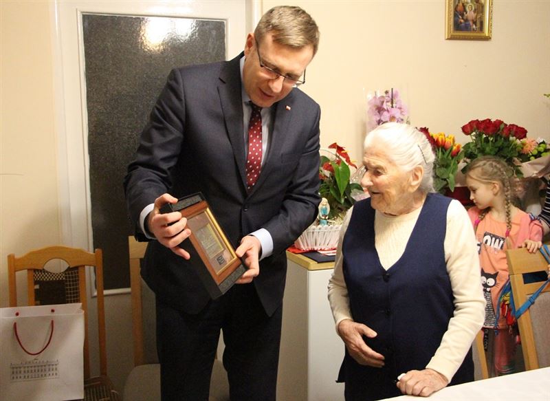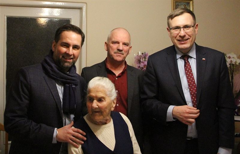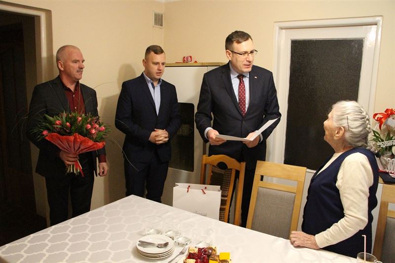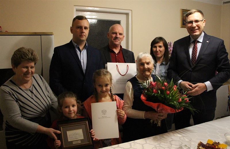 Piękny jubileusz 101 lat obchodziła mieszkanka gminy Młodzieszyn Pani Czesława Kamińska z Kamiona Dużego. Z tej właśnie okazji Pani Czesi i jej najbliższym, osobiście złożył wizytę poseł na Sejm RP ziemi sochaczewskiej Maciej Małecki. – Miałem zaszczyt odwiedzić dostojną Jubilatkę, złożyć życzenia i przekazać list i upominek w imieniu Prezydenta Andrzeja Dudy. Bardzo dziękuję całej rodzinie za tak bardzo mile spędzony wspólnie czas – mówił minister Małecki. Pani Czesława wychowała sześcioro dzieci, ma dziesięcioro wnuków i dziewiętnaścioro prawnuków, a dwudziesty jest w drodze. W wieku 56 lat została wdową. Całe życie pracowała w gospodarstwie rolnym i zajmowała się wychowaniem dzieci. Ministrowi podczas urodzinowej wizyty towarzyszyli też Sławomir Makowski - przewodniczący Rady Gminy Młodzieszyn, Michał Orliński - dyrektor biura poselskiego i Marcin Odolczyk - rzecznik prasowy Starostwa Powiatowego w Sochaczewie, którzy również złożyli jubilatce moc życzeń i gratulacji.