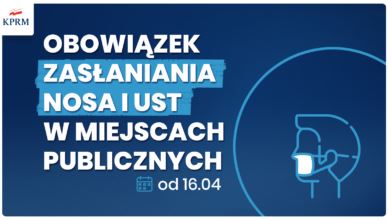 W związku z epidemią koronawirusa rząd wprowadził od czwartku, 16 kwietnia br. do odwołania obowiązek zasłaniania ust i nosa. Każda osoba w miejscu publicznym będzie musiała nosić maseczkę, szalik czy chustkę, która zakryje zarówno usta, jak i nos. Nakaz ten dotyczy wszystkich, którzy przebywają w miejscach ogólnodostępnych, znajdują się w przestrzeni, w której mogą się zetknąć z drugim człowiekiem, na ulicach i placach, w urzędach, w obiektach kultu religijnego, na targowiskach, sklepach czy miejscach świadczenia usług.