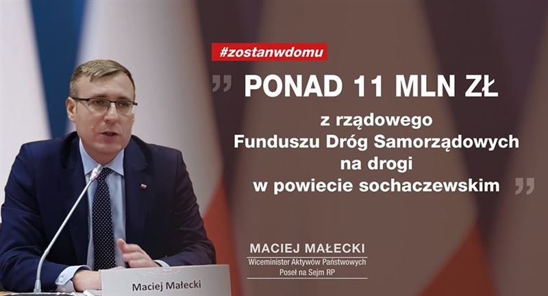 - Obok walki z koronawirusem działamy wciąż na innych polach. Dobra wiadomość dla ziemi sochaczewskiej. Jest ponad 11 mln zł rządowego wsparcia na drogi w powiecie. Tym razem z Funduszu Dróg Samorządowych na ziemię sochaczewską trafi 11 207 703,97 zł – informuje Maciej Małecki, poseł na Sejm RP, wiceminister w Ministerstwie Aktywów Państwowych. Kolejny dowód na to, że dzięki zaangażowaniu naszego posła, mieszkańcy naszego powiatu w efekcie mogą liczyć na rządowe wsparcie, w tym przypadku, jeśli chodzi o poprawę stanu dróg. Cieszy więc fakt, że właśnie w oparciu o wcześniej złożone wnioski, uzyskane rządowe środki zdecydowanie pomogą zmodernizować następną część dróg w Sochaczewie oraz w gminach np. Iłów, Rybno i Teresin.