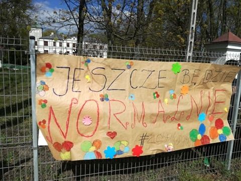 Zainspirowani wiadomościami z mediów, chcąc się złączyć z innymi oraz pocieszyć w tych trudnych chwilach, że jednak przyjdą lepsze dni. Wychowankowie Domu Dziecka w Giżycach wraz ze swoimi fantastycznymi wychowawcami i panią pedagog przygotowali plakaty wspierające nie tylko mieszkańców swojej miejscowości, ale wszystkich przejezdnych. Mimo ograniczeń, które teraz nas dotyczą musimy mieć nadzieję. W przygotowania zaangażowała się cała grupa, jedni tworzyli plakaty, inni grali na ukulele i gitarze, na koniec Oliwia Paul napisała wiersz, który publikujemy poniżej. Nadzieja mimo trudu, mimo losu przeciwności, starania są do życia w normalności. Inspiracja naszą są działania dobre, mamy nadzieję, że to nam pomoże. Teraz grom na nas z nieba spada, lecz nie poddawać się uczyła mnie mama, więc kreatywnością ludzi zarażam i mimo, iż miejscowość małą mamy, jesteśmy dumni, że wciąż się staramy. Już kłuć cierniami zła się nie damy.