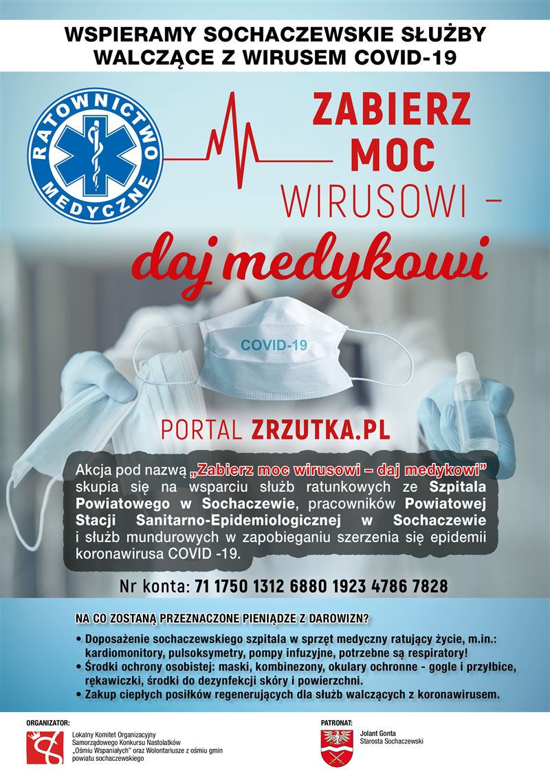 71 1750 1312 6880 1923 4786 7828, tytuł wpłaty: darowizna na ,,Zabierz moc wirusowi – daj medykowi”.