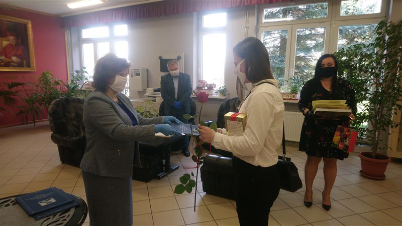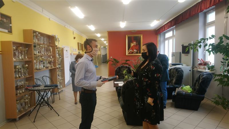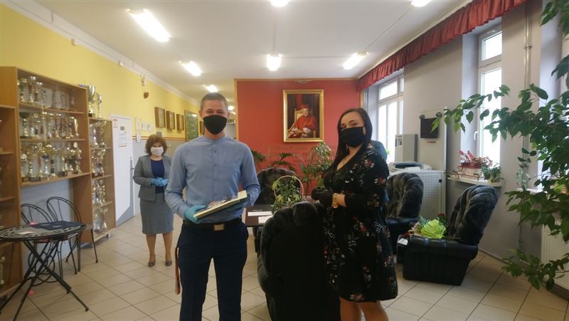 Do szkoły każdy wchodził indywidualnie, przy wejściu czuwała siostra Urszula, która dopilnowała, aby każdy zdezynfekował ręce, następnie absolwent udawał się po odbiór upragnionego świadectwa (w rękawiczkach i maseczce na twarzy).