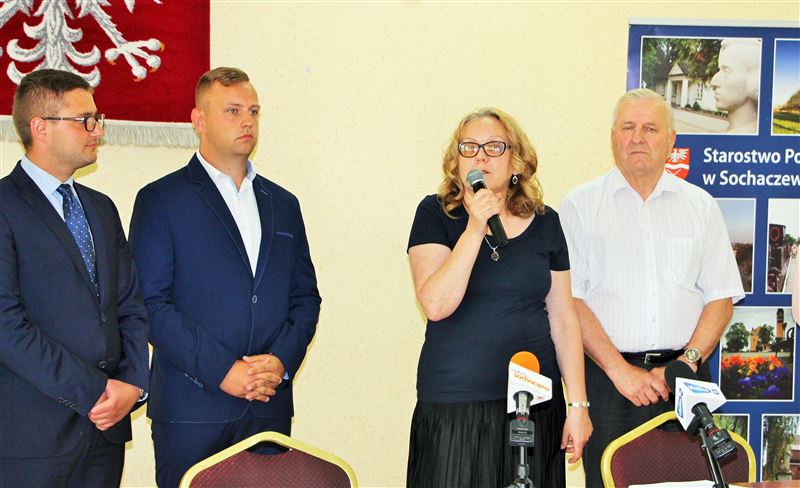 Gospodarzem spotkania była starosta Jolanta Gonta, która wyrażając zadowolenie z kolejnych rozpoczętych inwestycji podkreślała: – Jestem niezwykle usatysfakcjonowana, iż nie ustajemy w prowadzeniu remontów dróg na terenie naszego powiatu, czego potwierdzeniem są podpisane dziś, kolejne umowy z wykonawcami. Trzeba zaznaczyć, że środki na realizację tych inwestycji, które w sumie kosztować będą ponad 6 mln zł aż w 70 procentach pozyskaliśmy z rządowego dofinansowania z Funduszu Dróg Samorządowych, który zakłada przyspieszenie powstawania nowoczesnej i bezpiecznej infrastruktury drogowej na szczeblu lokalnym. To już kolejne duże środki, które trafiają do powiatu sochaczewskiego, wszystko to dzięki profesjonalnie wykonanym wnioskom oraz co należy również podkreślić, gdyż niezwykle to doceniamy, wsparciu posła Macieja Małeckiego, który w dużej mierze zabiega o to, by to właśnie na ziemię sochaczewską one trafiały. Stanowi to ważny element prawidłowego funkcjonowania i rozwoju naszego terenu oraz przyczynia się do poprawy jakości życia i bezpieczeństwa mieszkańców.