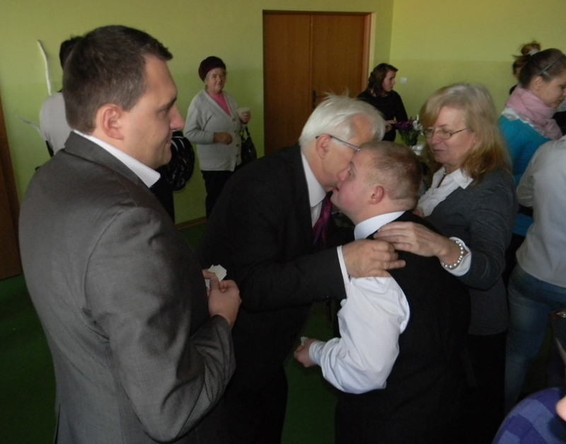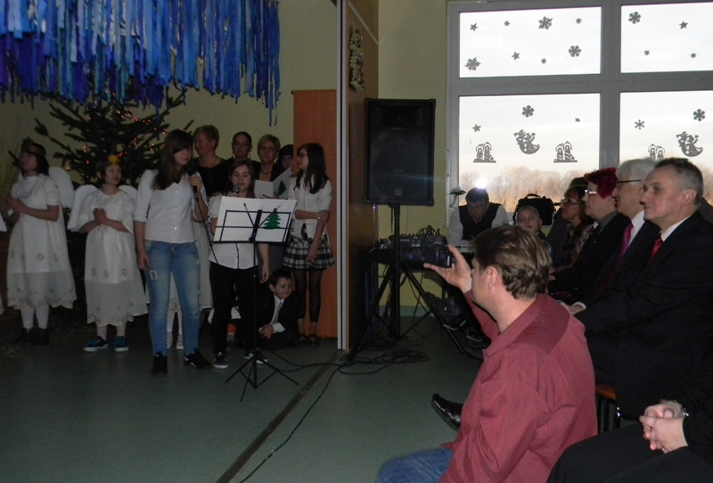 Do takiej wizyty doszło na cztery dni przed wigilijną wieczerzą w Zespole Szkół w Erminowie. Dyrektor szkoły Hanna Milcarz powitała serdecznie m.in. wiceprzewodniczącą Rady Powiatu Jolantę Popiołek, wicestarostę Janusza Ciurę, przedstawicieli wydziałów Starostwa Powiatowego w Sochaczewie m.in. dyrektora Powiatowego Zespołu Edukacyjnego Bogusława Bęzla, zaprzyjaźnione ze szkołą od lat osoby, przedstawicieli firm, placówek, władz miasta, gminy Młodzieszyn i wszystkich obecnych. Wielu gości przybyło na tą uroczystość z prezentami światecznymi, m.in propagujący sport i zdrowy tryb życia, wicestarosta J. Ciura podarował „sportowe” upominki oraz w imieniu wójta gm. Rybno sekretarz Agnieszka Kosiorek przekazała obraz autorstwa młodej malarki.