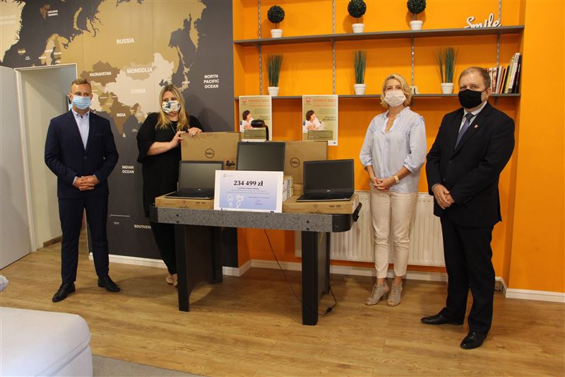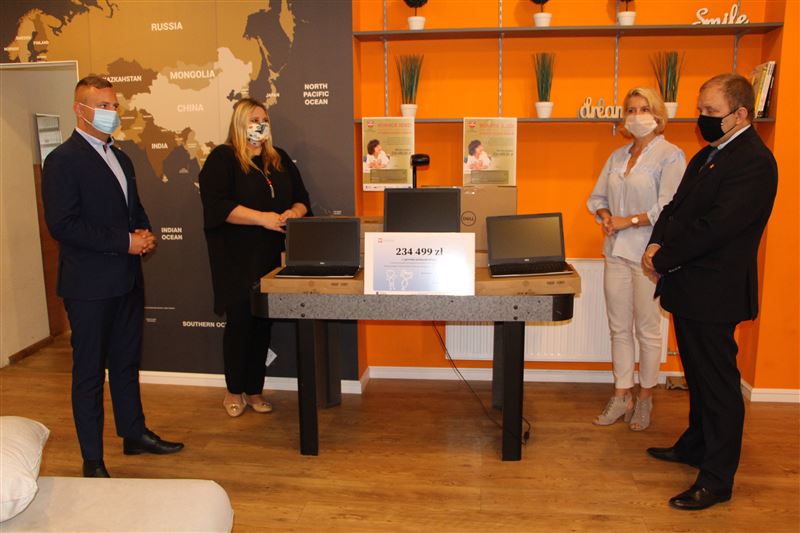 Pierwszy sprzęt komputerowy zakupiony z projektu „Wsparcie dzieci umieszczonych w pieczy zastępczej w okresie pandemii COVID-19” trafił w piątek, 28 sierpnia do dzieci z Placówki Opiekuńczo-Wychowawczej w Giżycach. Wicestarosta Tadeusz Głuchowski wraz z dyrektor Powiatowego Centrum Pomocy Rodzinie Katarzyną Kajak oraz reprezentującym posła na Sejm RP Macieja Małeckiego, dyrektorem jego biura Michałem Orlińskim osobiście wręczyli dzieciom 12 sztuk laptopów.