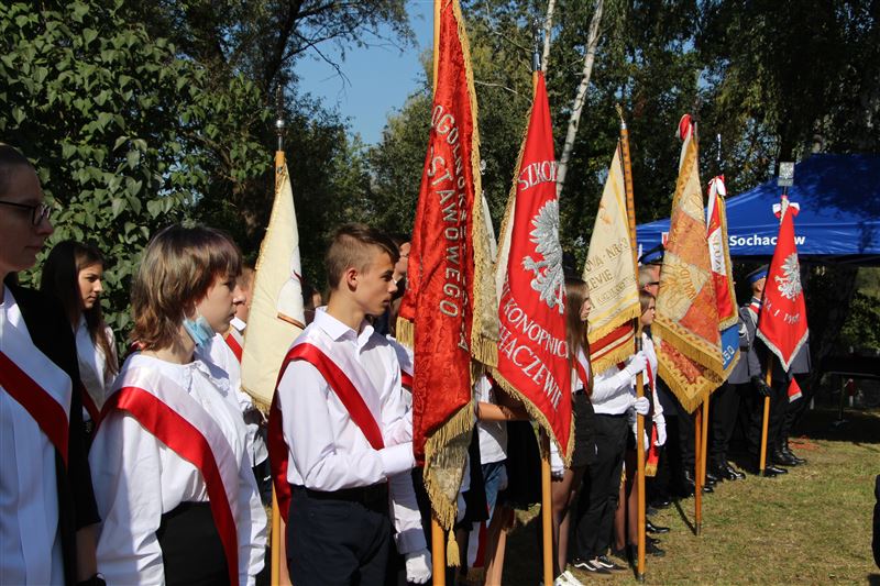Na uroczystościach obecni byli starosta sochaczewski Jolanta Gonta, wicestarosta Tadeusz Głuchowski, burmistrz Piotr Osiecki, zastępcy burmistrza - Marek Fergiński i Dariusz Dobrowolski, przedstawiciele wojska, policji i straży, radni powiatowi i miejscy, harcerze i poczty sztandarowe z miejskich i powiatowych szkół oraz mieszkańcy powiatu. Samorząd gminy Nowa Sucha reprezentowała sekretarz gminy Anna Zatorska -Janiak oraz przewodniczący Rady Gminy Mariusz Mikulski.
