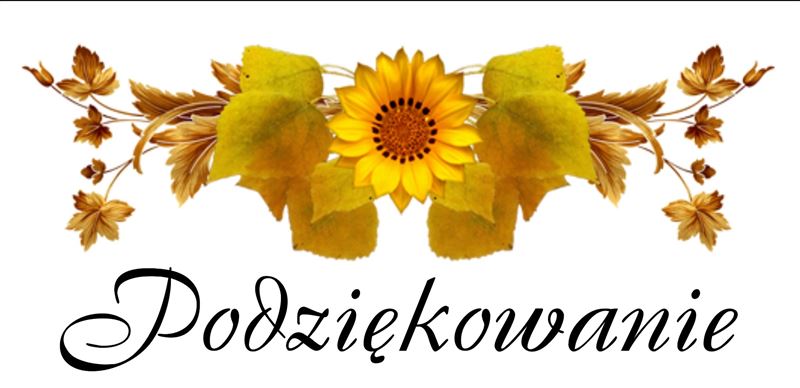 Serdeczne podziękowania składamy wójtom i delegacjom dożynkowym z gmin powiatu sochaczewskiego za uświetnienie tegorocznych dożynkowych uroczystości: z Brochowa - Anecie Krawczyk za przygotowanie wieńca; z Iłowa – starostom dożynkowym Gabrieli i Grzegorzowi Feligom; z Młodzieszyna – starostom gminnym: Teresie Kornackiej i Mariuszowi Kornackiemu oraz Aleksandrze Chaber z kwiaciarni „Ale Bajka” za wykonanie wieńca; z Nowej Suchej – starostom dożynkowym – Ewelinie i Kamilowi Szymańskim oraz mieszkańcom wsi Szeligi za przygotowanie wieńca; z Rybna – starostom gminnym – Ninie i Andrzejowi Krawczykom i Irenie Krawczyk za wykonanie wieńca dożynkowego, z Teresina – starostom gminnym: Katarzynie i Pawłowi Pałubom oraz wykonawcom wieńca: Grażynie Dudek, Grażynie Grzegorek i Annie Szczepaniak. Podziękowania kierujemy do Anety Roskosz, przewodniczącej Rady Powiatowej Mazowieckiej Izby Rolniczej i członków Rady za przygotowanie wieńca dożynkowego. Za uświetnienie mszy św. dziękujemy pocztom sztandarowym OSP z Janaszówka i Szczytna oraz delegacjom za przygotowanie koszów z darami. W tym roku były to: Szkoła Podstawowa w Wymysłowie, Powiatowe Koło Pszczelarzy – Zygmunt Łukasiewicz i Leszek Bryński, Mazowiecki Ośrodek Doradztwa Rolniczego oddział w Bielicach, Zespół Szkół w Teresinie oraz Dorota i Krzysztof Borek, Małgorzata i Andrzej Paczkowscy a także Karolina i Rafał Durzyńscy.