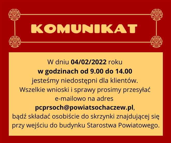 Starostwo Powiatowe w Sochaczewie poszukuje wolontariuszy, znających język ukraiński i komunikatywnie język polski. Zapraszamy do kontaktu z Powiatowym Centrum Pomocy Rodzinie w Sochaczewie: ...