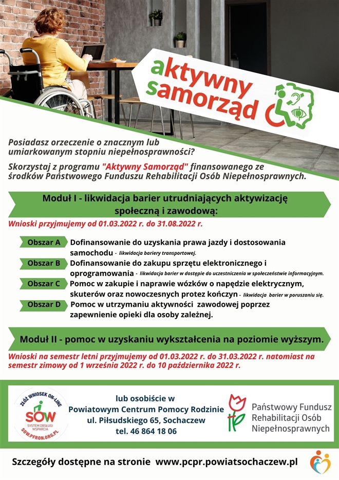 Wszystkich zainteresowanych skorzystaniem z dofinansowania w ramach programu Aktywny Samorząd Moduł I i Moduł II zapraszamy do składania wniosków. Od dzisiaj można składać wnioski zarówno ...