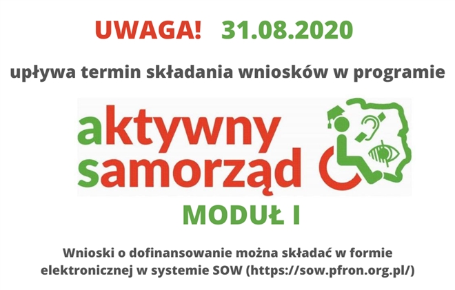 UWAGA 31.08.2020 upływa termin składania wniosków na dofinansowanie z programu Aktywny Samorząd Moduł I Przypominamy, że dofinansowanie w ramach tego programu w 2020 roku można uzyskać na: Obszar A – ...