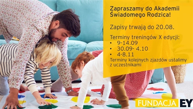 W imieniu Fundacji EY zapraszamy rodziców zastępczych i adopcyjnych do wzięcia udziału w X edycji Akademii Świadomego Rodzica w oparciu o style przywiązania J. Bowlby'ego. W Akademii dowiecie się jak wspierać ...