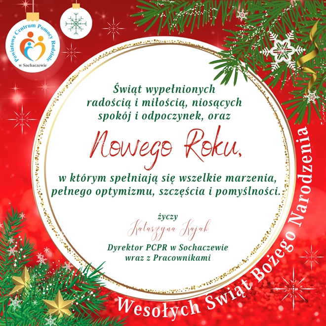 Świąt wypełnionych radością i miłością, niosących spokój i odpoczynek, oraz Nowego Roku, w którym spełniają się wszelkie marzenia, pełnego optymizmu, szczęścia i pomyślności. Życzy Katarzyna Kajak &ndash...