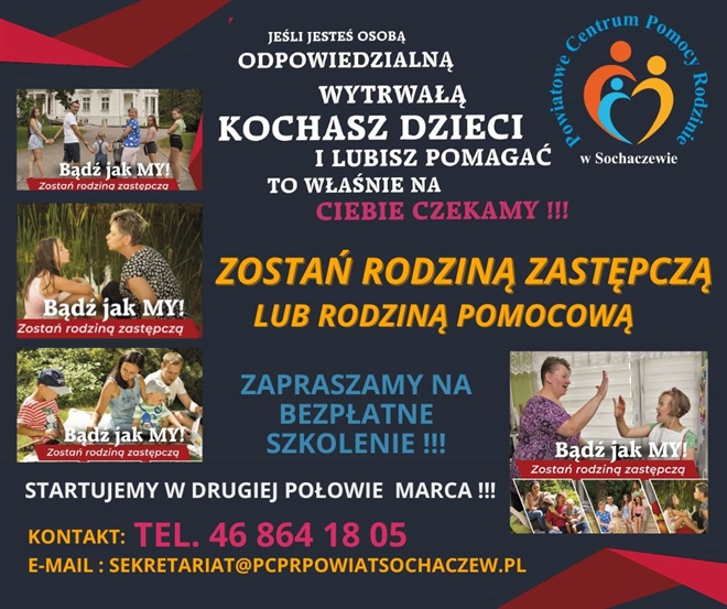 Jeżeli chcesz zostać RODZINĄ ZASTĘPCZĄ to właściwy moment na kontakt z naszymi specjalistkami od pieczy zastępczej.W drugiej połowie marca startujemy z bezpłatnym szkoleniem dla kandydatów na rodziców za...