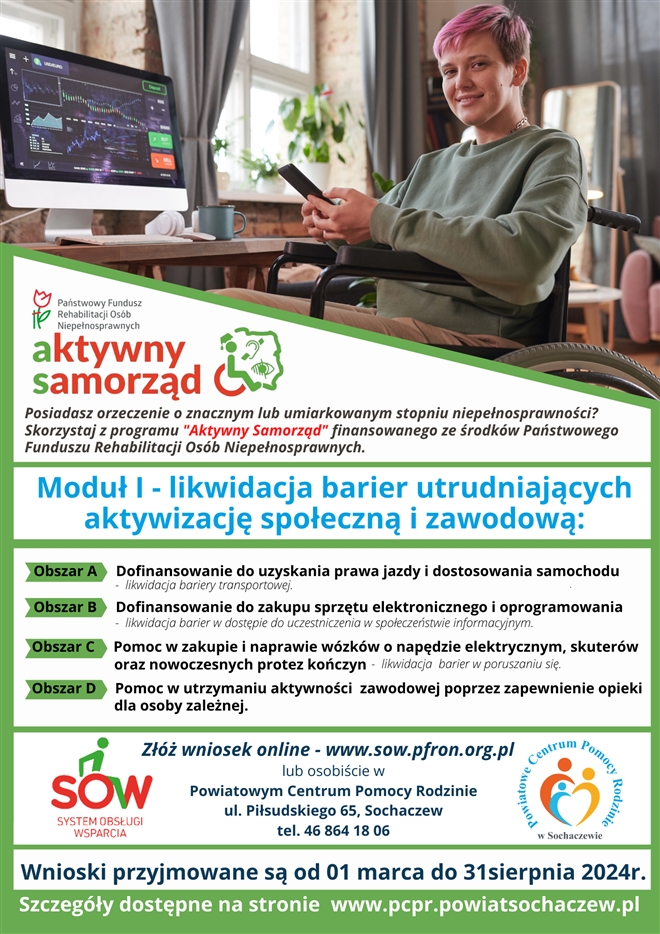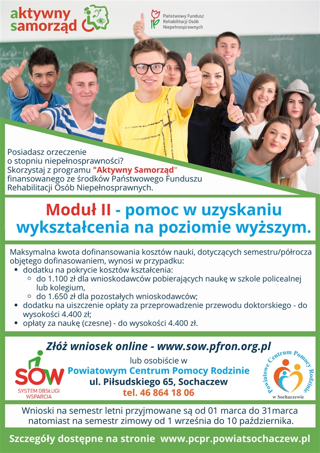Jesteś studentem, posiadasz orzeczenie o niepełnosprawności skorzystaj z dofinansowania do nauki w ramach programu Aktywny Samorząd Moduł II. Od 01/09/2024r. rusza nowy nabór wniosków na dofinansowanie ...