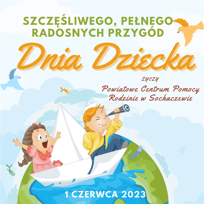 Szczęśliwego, pełnego radosnych przygód Dnia Dziecka, życzy Powiatowe Centrum Pomocy Rodzinie w Sochaczewie.