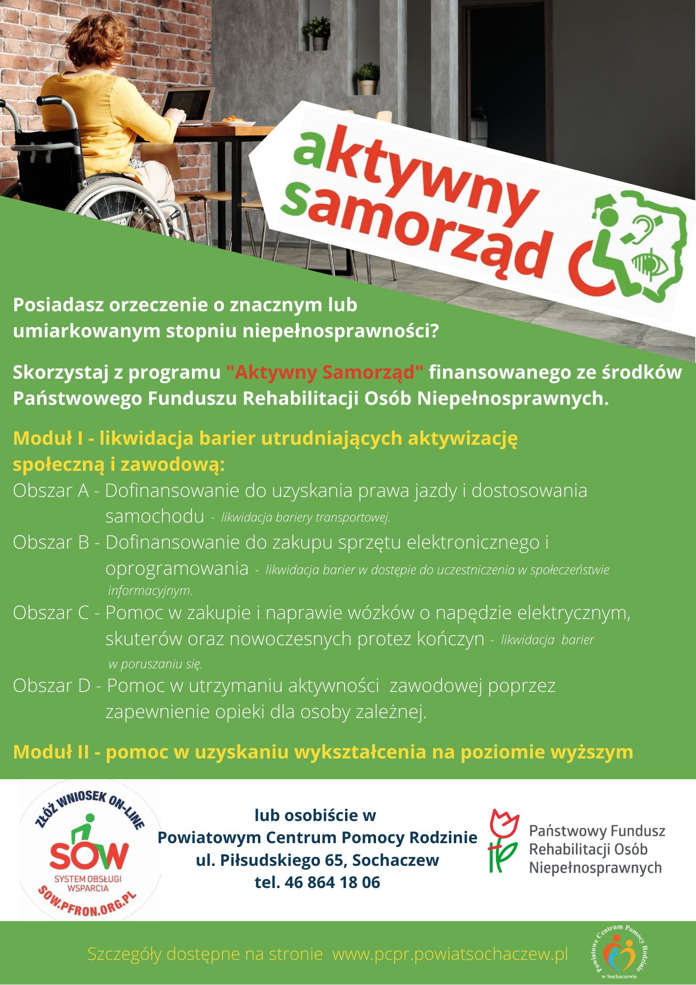 AKTYWNY SAMORZĄD - dofinansowania 23-04-2021 08:59 A A A Szczegóły dofinansowań dostępne są w zakładce OSOBY NIEPEŁNOSPRAWNE PROGRAM AKTYWNY SAMORZĄD MODUŁ I LUB MODUŁ II 2021