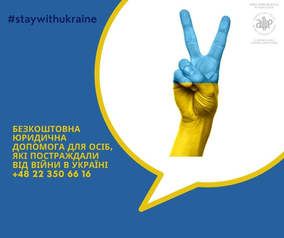 W obliczu wojny na Ukrainie i dramatu niewinnych ludzi, którzy są jej ofiarami, Okręgowa Rada Adwokacka w Warszawie oraz wszystkie Izby Adwokackie w Polsce uruchomiły bezpłatną pomoc prawną dla ofiar wojny na Ukrainie.