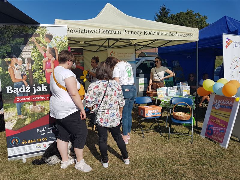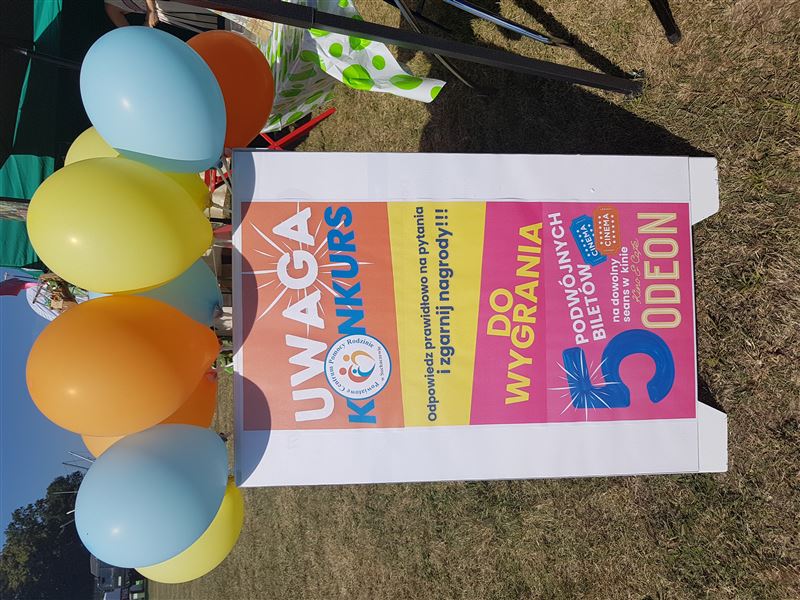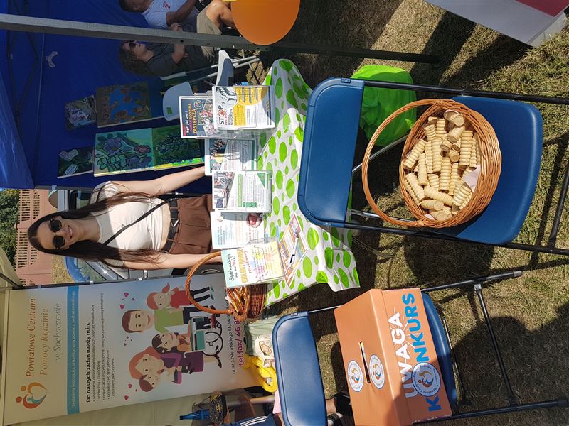 W naszym namiocie mogliście porozmawiać z naszymi specjalistkami na tematy dotyczące naszej działalności, ale również wziąć udział w konkursie wiedzy o Powiatowym Centrum Pomocy Rodzinie. Na uczestników czekały super nagrody - 5 podwójnych wejściówek do Kina Odeon - fundatora nagród. Dzięki Wolontariuszom z Klubu Wolontariusza działającego przy CUS Sochaczew również nasi najmłodsi goście nie mogli narzekać na nudę, były tatuaże, warkoczyki i balony.