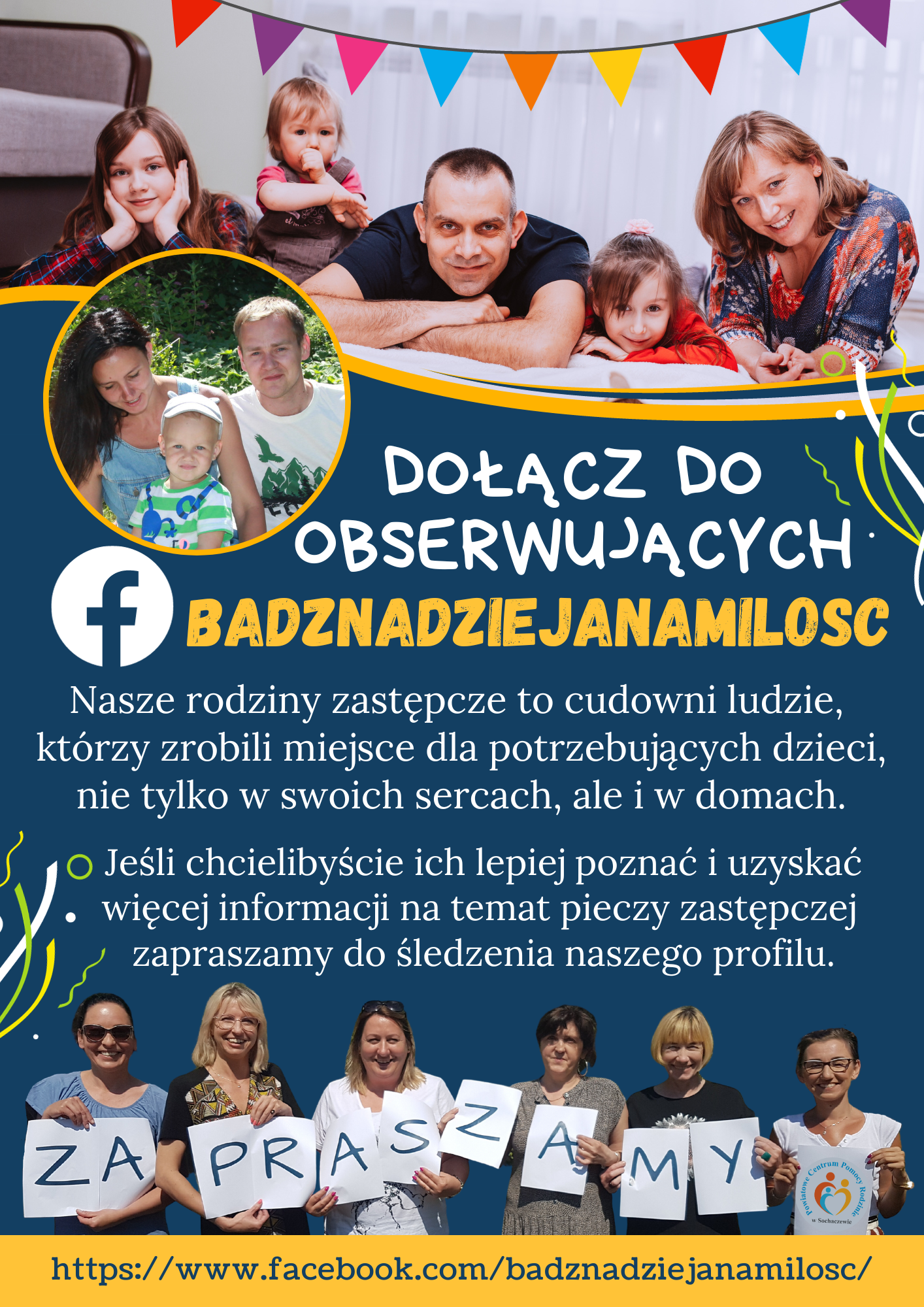 Nasze rodziny zastępcze to cudowni ludzie, którzy zrobili miejsce dla potrzebujących dzieci, nie tylko w swoich sercach, ale i w domach. Jeśli chcielibyście ich lepiej poznać i uzyskać więcej informacji na temat pieczy zastępczej zapraszamy do śledzenia naszego profilu: https://www.facebook.com/badznadziejanamilosc/