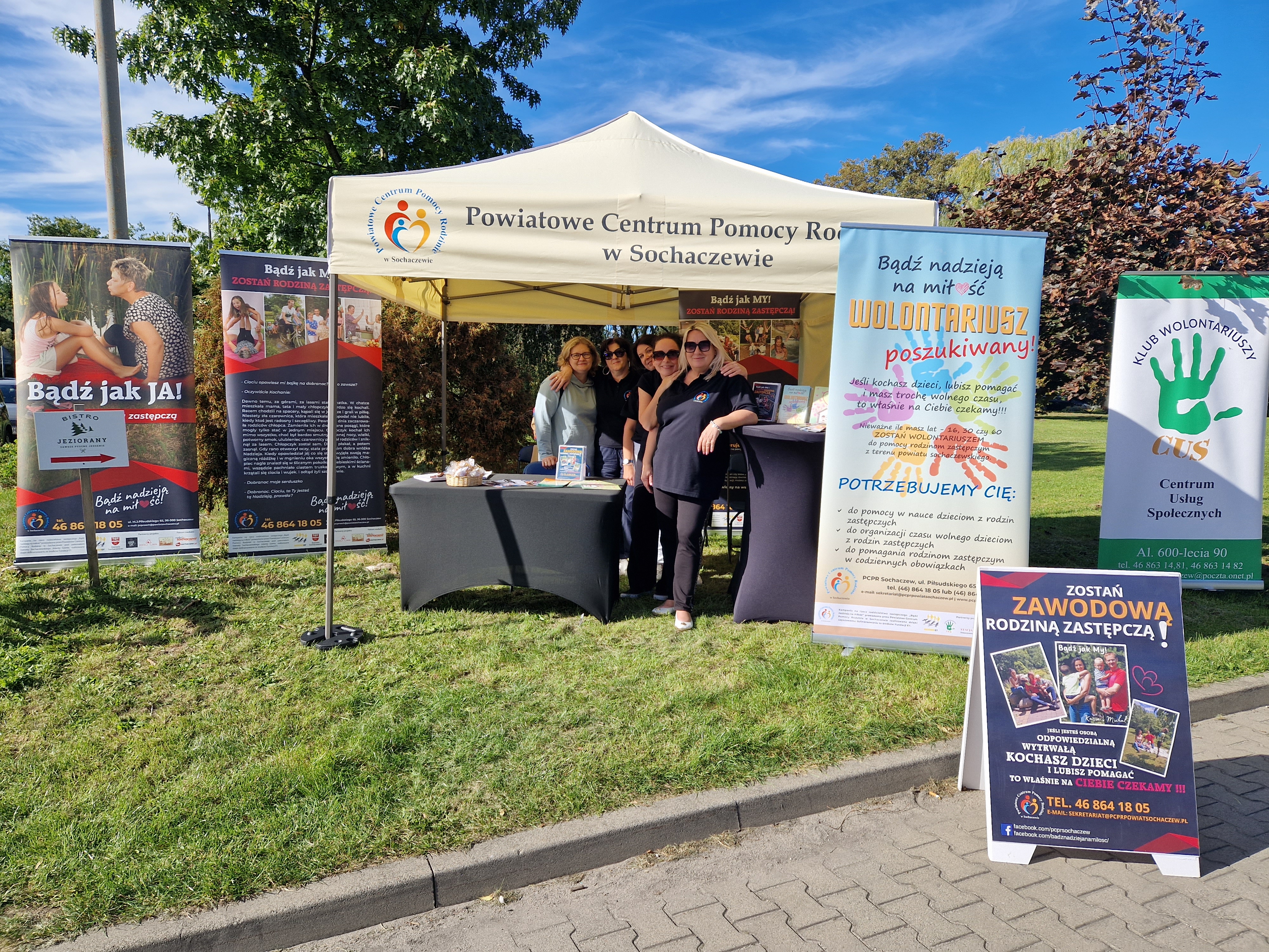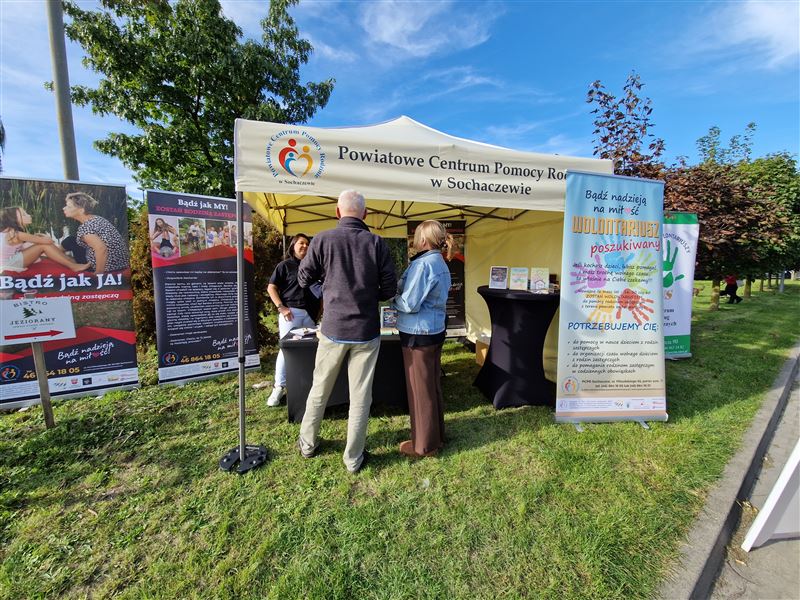 W poniedziałek można nas było spotkać przed naszą siedzibą. Specjalnie dla uczestników dnia otwartego zorganizowanego w ramach kampanii społecznej "Bądź nadzieją na miłość - Zostań rodziną zastępczą!" przygotowaliśmy nasze stoisko informacyjne w namiocie przed budynkiem Starostwa Powiatowego. Oprócz naszych specjalistek na stoisku można było spotkać nasze mamy zastępcze - Iwonkę i Jolę, z którymi można było porozmawiać nie tylko o urokach ale również i trudach rodzicielstwa zastepczego. Na najmłodszych odwiedzających czekały animatorki z Klubu Wolontariuszy przy CUS Sochaczew.
