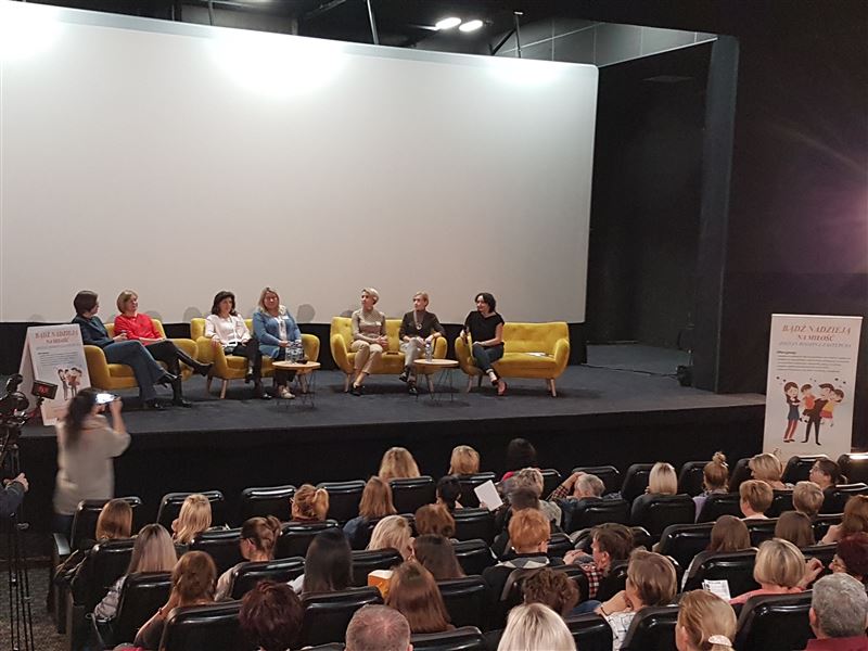 14 listopada pracownicy Powiatowego Centrum Pomocy Rodzinie (PCPR) oraz członkowie Stowarzyszenia na rzecz pieczy zastępczej "Stacja Dom" uczestniczyli w prelekcji na temat pieczy zastępczej, zorganizowanej przez kino Odeon w ramach nowego cyklu "Kobiety w roli głównej". Prelekcja połączona była z przedpremierową emisją filmu "1800 gramów". Podczas spotkania widzowie mogli dowiedzieć się na czym polega rodzicielstwo zastępcze, kto może zostać rodzicem zastępczym i jakie będzie miał obowiązki z tego tytułu oraz na jakie wsparcie może liczyć ze strony instytucji i stowarzyszenia. Ważnym elementem spotkania była możliwość wysłuchania historii z życia rodzin zastępczych z naszego powiatu. Mamy nadzieję, że udało się chociaż trochę przybliżyć temat rodzicielstwa zastępczego, a jeśli czyjeś serce zaczęło bić trochę szybciej a w głowie zaświtała myśl, że może i Ja, mogłabym/mógłbym zostać taką rodziną, to PCPR zaprasza do swojej siedziby znajdującej się w budynku Starostwa Powiatowego.
