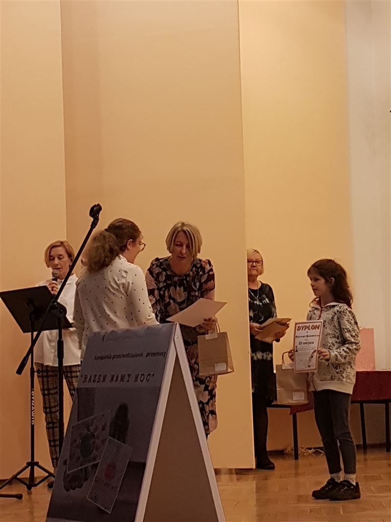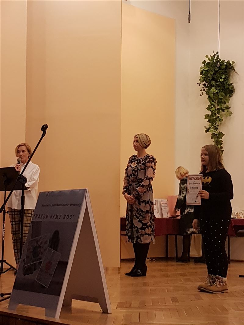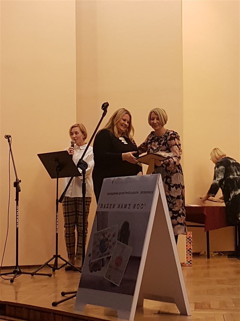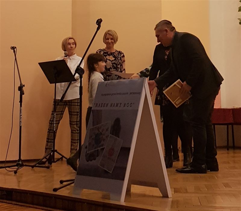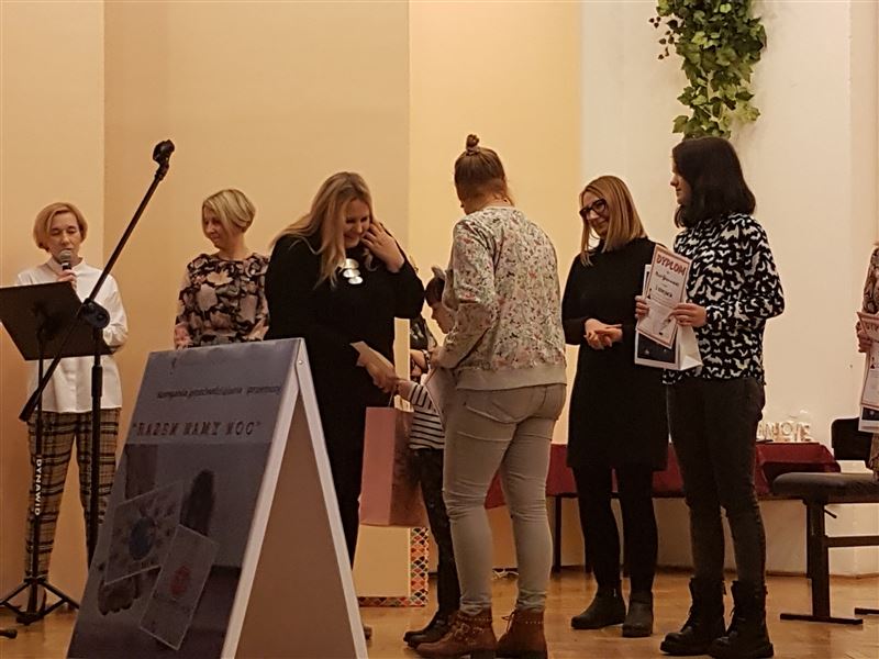 Po koncercie, pani Ewa Kajetaniak, pedagog PCPR podsumowała kampanię „Razem mamy Moc”, po czym przeszliśmy do najbardziej wyczekiwanej części Gali czyli rozdania nagród w IV powiatowym konkursie literackim „Przemoc, której nie widać”.