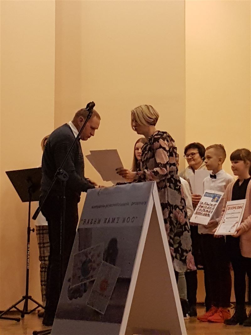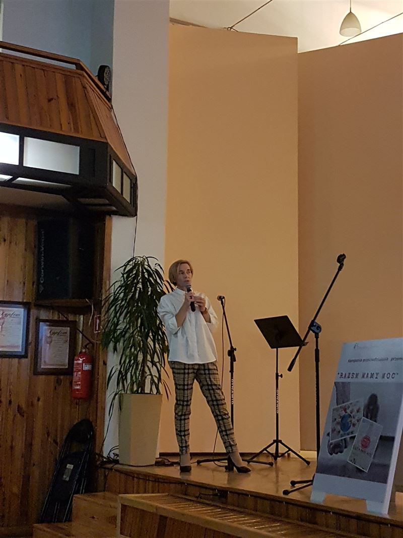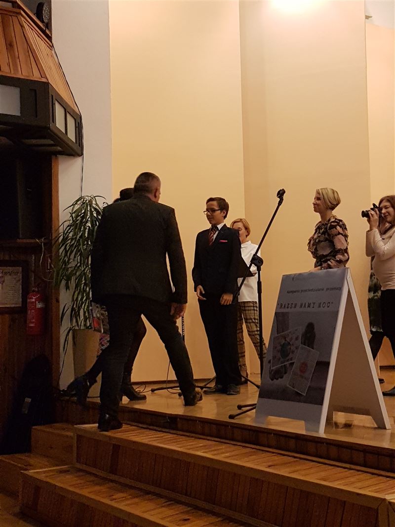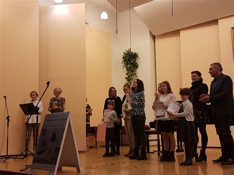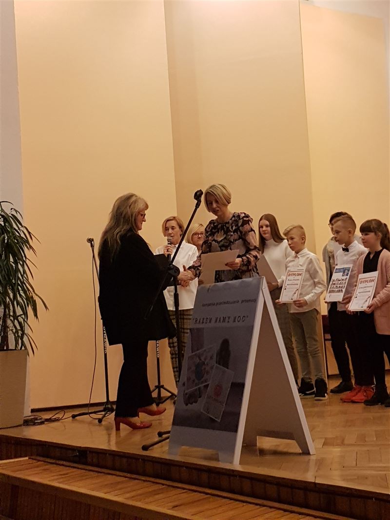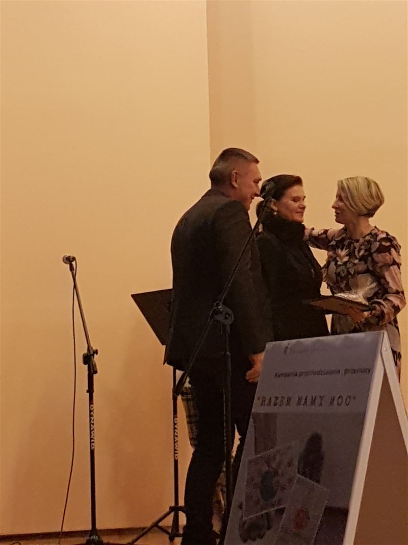 Po koncercie, pani Ewa Kajetaniak, pedagog PCPR podsumowała kampanię „Razem mamy Moc”, po czym przeszliśmy do najbardziej wyczekiwanej części Gali czyli rozdania nagród w IV powiatowym konkursie literackim „Przemoc, której nie widać”.