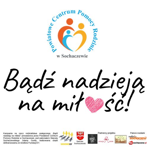 28 września uroczystą konferencją zainaugurowaliśmy naszą kampanię, promującą rodzicielstwo zastępcze „Bądź nadzieją na miłość”, którą swoim patronatem objęła Jolanta Gonta, starosta sochaczewski. Kampania została dofinansowana ze środków Fundacji EY. Partnerami projektu są: MOPS Sochaczew, Stowarzyszenie na rzecz pieczy zastępczej "Stacja Dom" oraz kawiarnia Łoskot CAFE. Patronat medialny nad kampanią objęło Radio Sochaczew oraz portal tusochaczew.pl