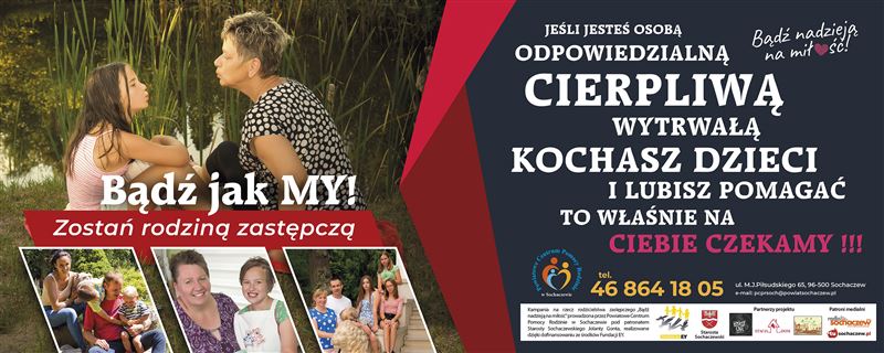 Zapraszamy do śledzenia naszej strony i naszego facebook'a, a także obejrzenia naszego filmu (linki poniżej) promującego rodzicielstwo zastępcze "Bądź nadzieją na miłość", w którym wystąpiły rodziny zastępcze z terenu powiatu sochaczewskiego.